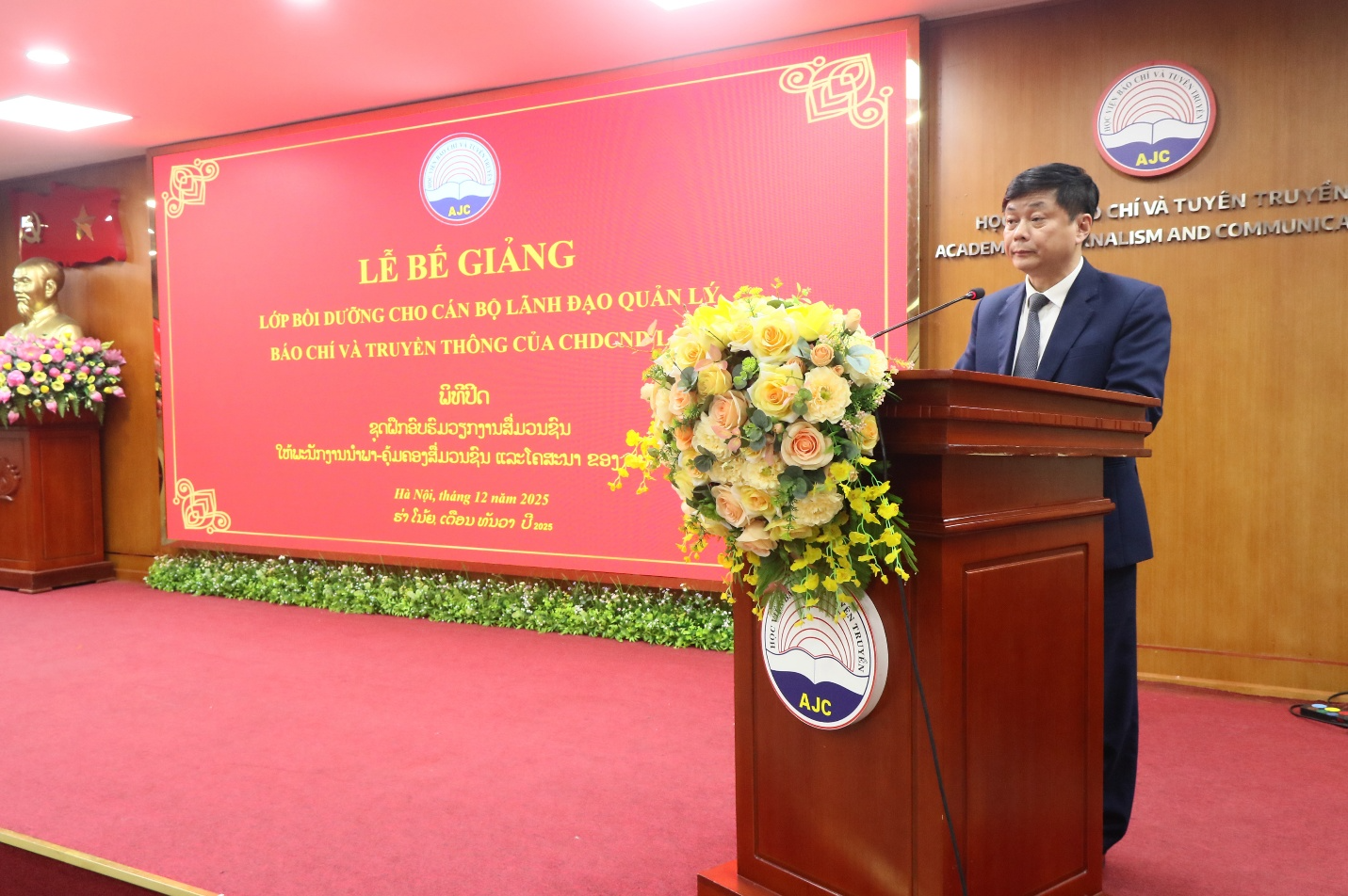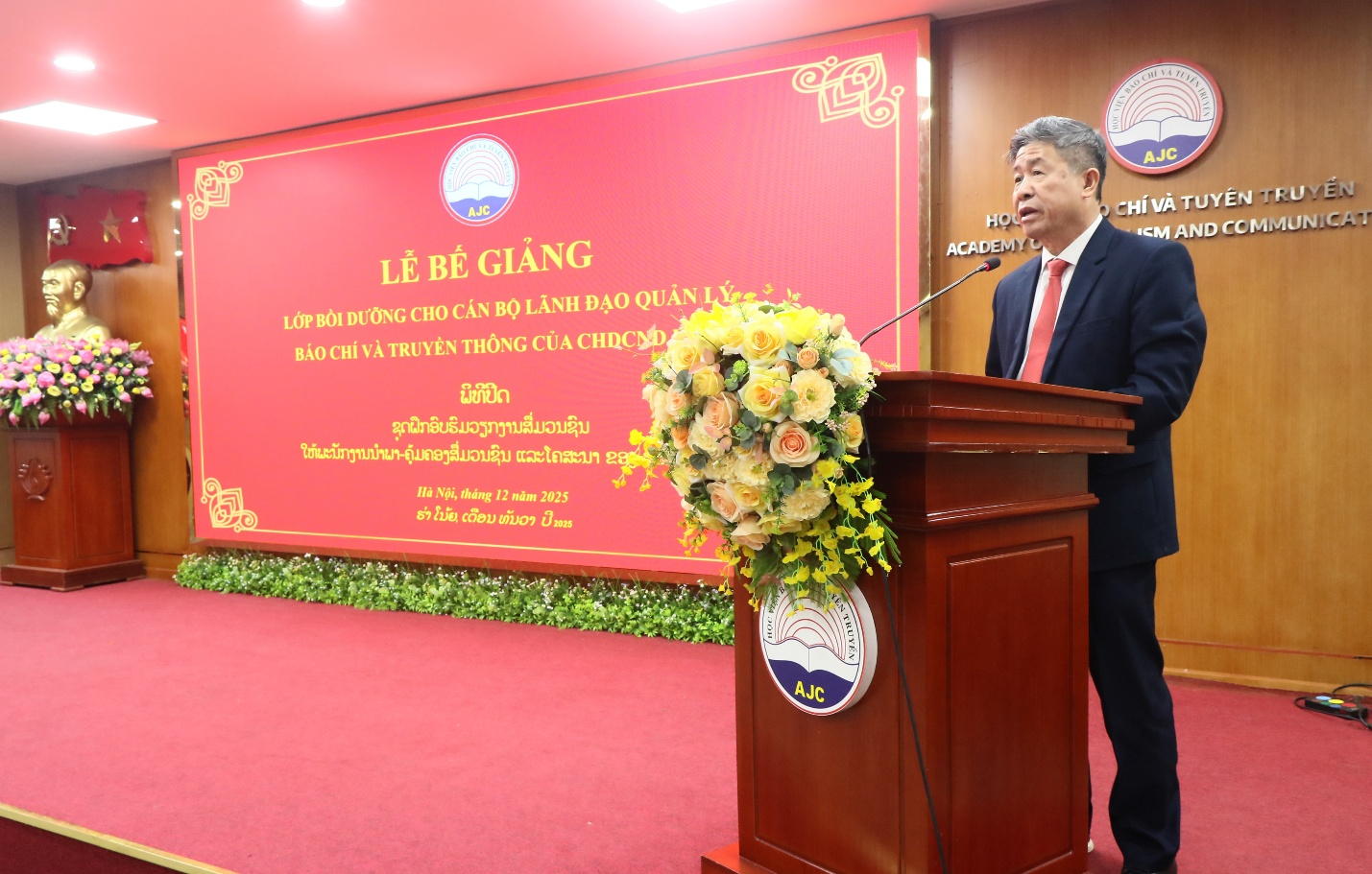 Chiều 05/12/2025, Học viện Báo chí và Tuyên truyền tổ chức Lễ bế giảng Lớp bồi dưỡng công tác quản lý báo chí dành cho cán bộ quản lý báo chí của nước CHDCND Lào năm 2025.