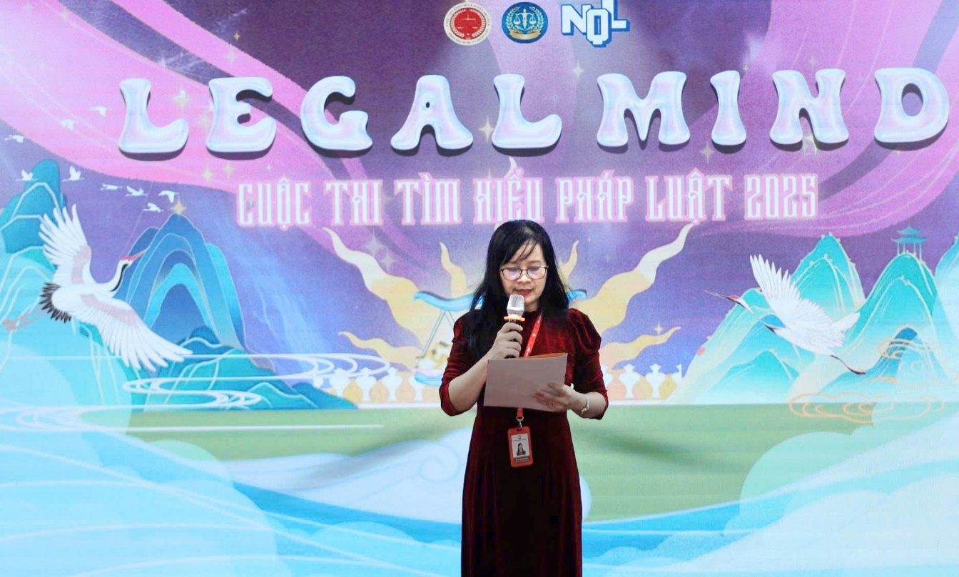 Các đại biểu tham dự Chung kết Cuộc thi “Tìm hiểu pháp luật 2025 - Legal Mind”Phát biểu tại chương trình, TS. Vũ Thị Thu Quyên, Trưởng khoa Nhà nước và Pháp luật nhấn mạnh: “Cuộc thi không chỉ là hoạt động thiết thực hướng tới kỷ niệm Ngày Pháp luật Việt Nam (09/11) mà còn là dịp để sinh viên rèn luyện tư duy pháp lý, kỹ năng hùng biện và khả năng vận dụng pháp luật vào thực tiễn đời sống.”