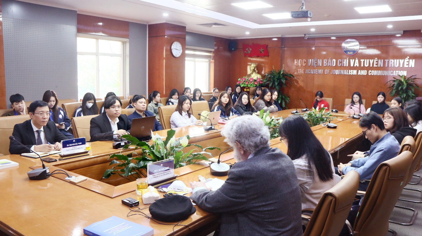 Giáo sư Michael Zweig, Đại học Stony Brook, Hoa Kỳ tọa đàm với giảng viên, sinh viên Học viện Báo chí và Tuyên truyền