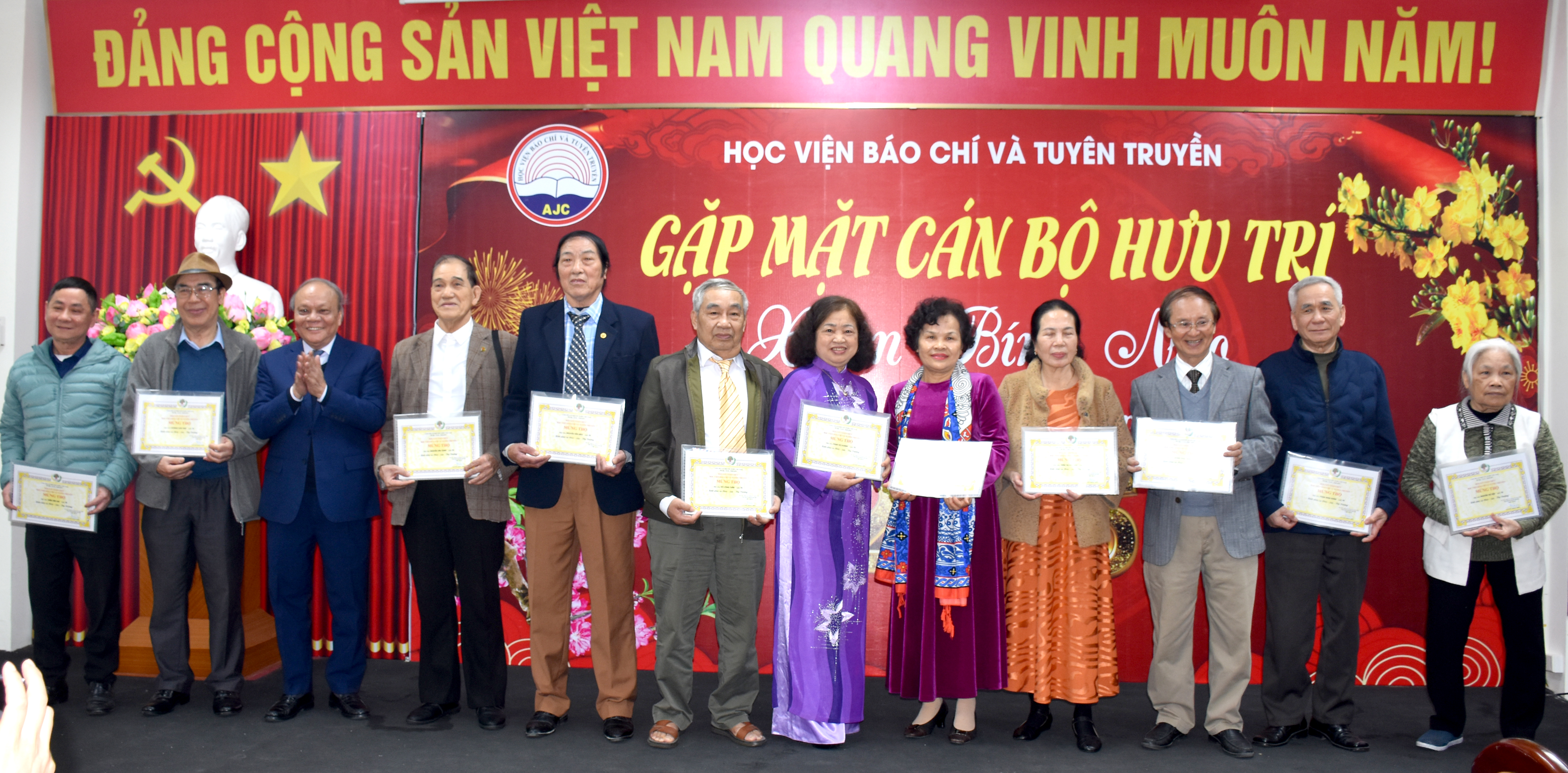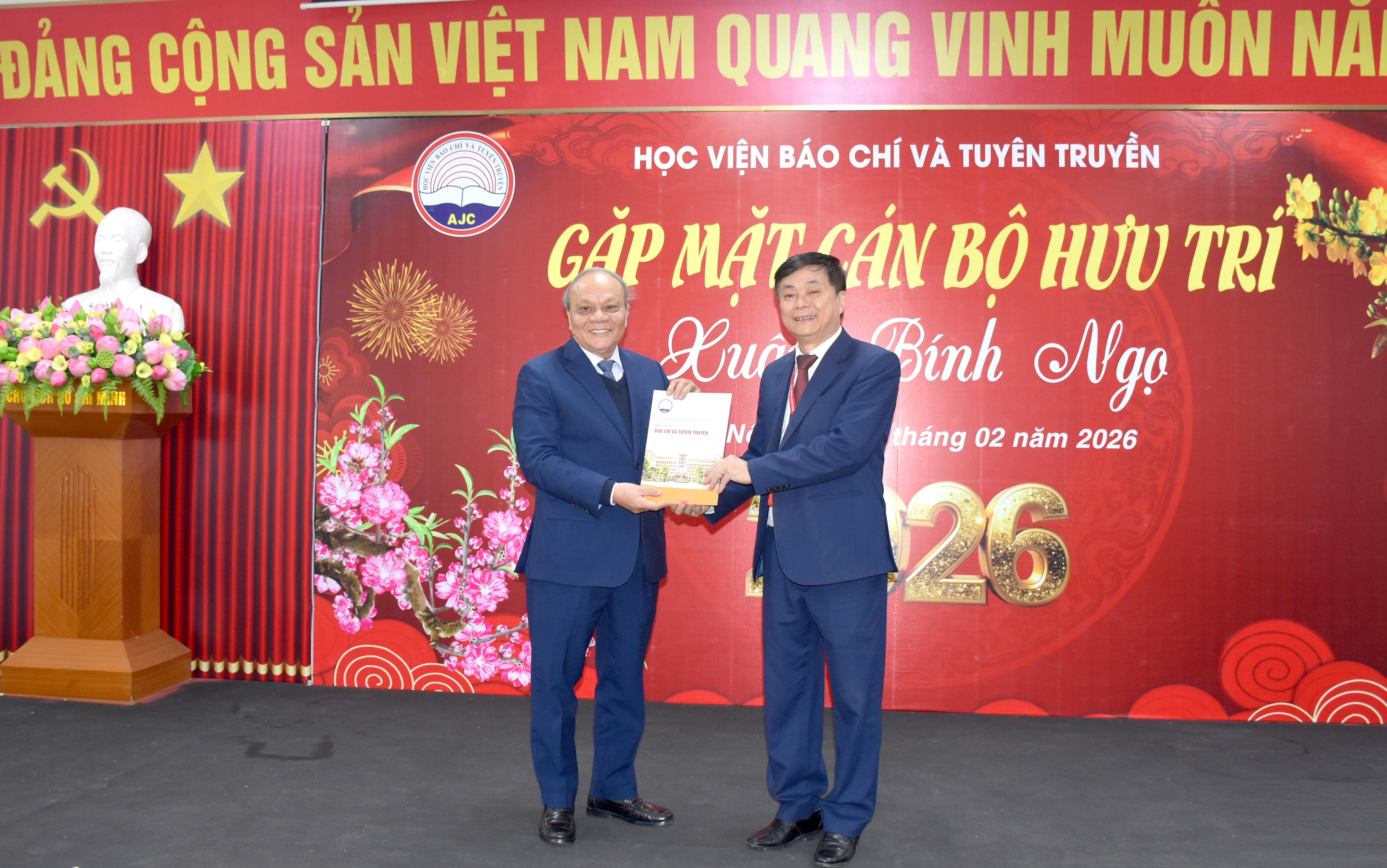 Sáng 06/02/2026 (tức 19 tháng Chạp năm Ất Tỵ), Học viện Báo chí và Tuyên truyền long trọng tổ chức Chương trình Gặp mặt cán bộ hưu trí nhân dịp Xuân Bính Ngọ 2026. Chương trình diễn ra tại Hội trường tầng 2, Trung tâm Thông tin khoa học Học viện trong không khí ấm áp, trang trọng.