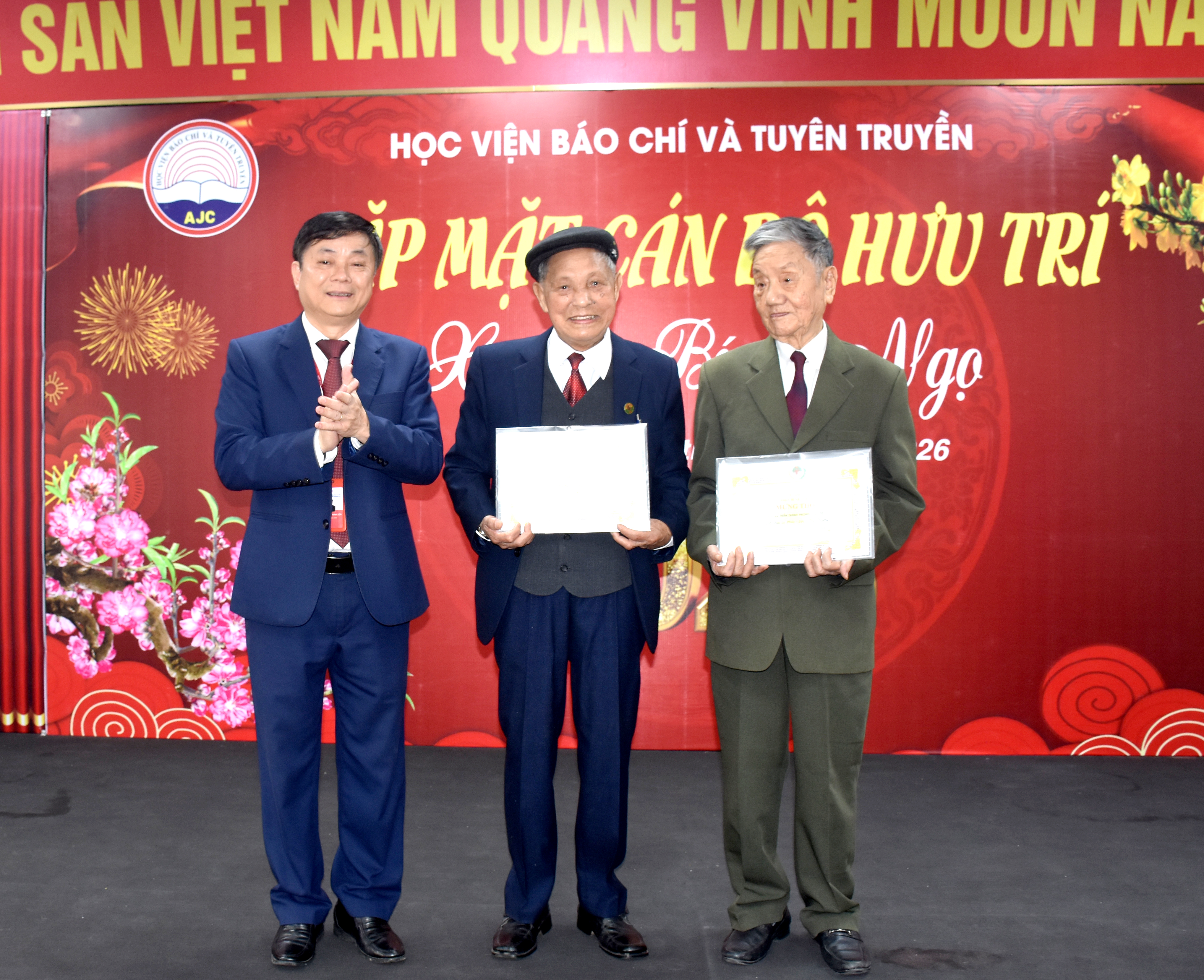 PGS,TS. Lương Khắc Hiếu trao tặng Giấy mừng thọ các hội viên Hội Cựu giáo chức Học việnChương trình Gặp mặt cán bộ hưu trí Xuân Bính Ngọ 2026 là dịp để các thế hệ cán bộ, giảng viên Học viện cùng ôn lại truyền thống, thắt chặt tình cảm, củng cố niềm tin và trách nhiệm chung trong việc gìn giữ, phát huy các giá trị tốt đẹp, góp phần xây dựng Học viện Báo chí và Tuyên truyền ngày càng phát triển bền vững. |