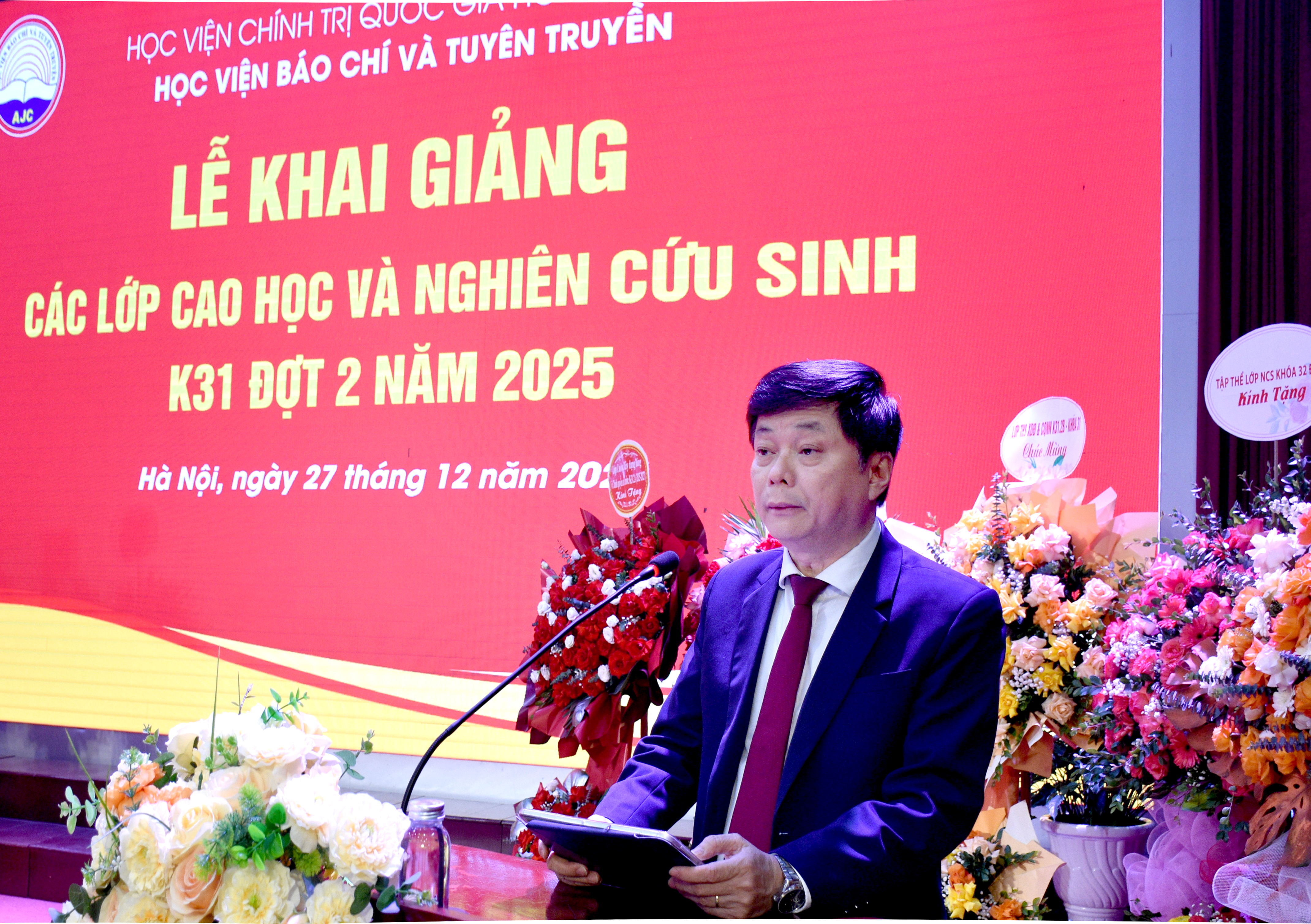 Sáng 27/12/2025, tại Hội trường lớn, Học viện Báo chí và Tuyên truyền long trọng tổ chức Lễ Khai giảng các lớp Cao học và Nghiên cứu sinh khóa 31 đợt 2 năm 2025.