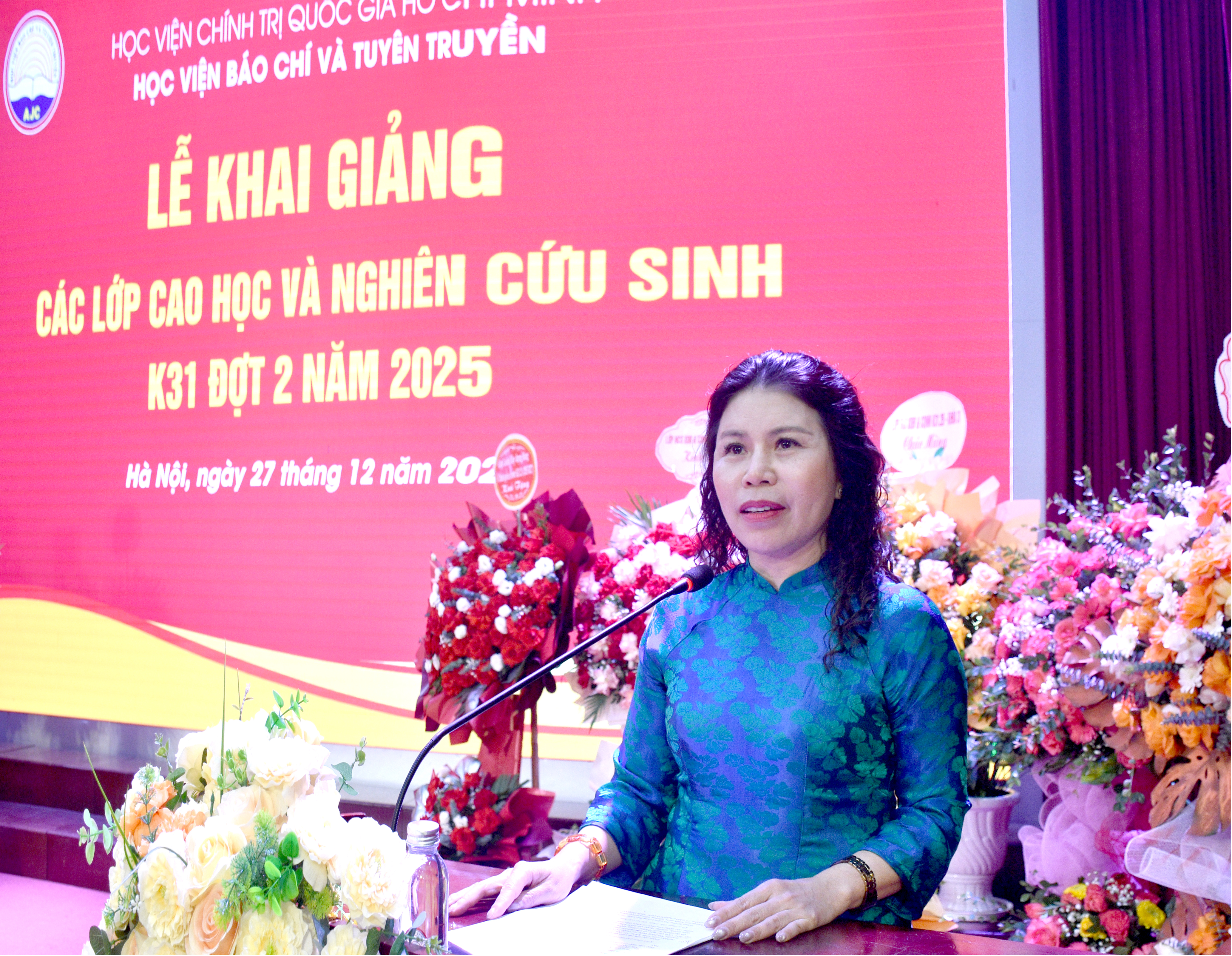 PGS, TS. Phạm Minh Sơn, Giám đốc Học viện phát biểu khai giảng các lớp Cao học, Nghiên cứu sinh khóa 31 đợt 2 năm 2025Đại diện học viên cao học và nghiên cứu sinh khóa 31 đợt 2, nghiên cứu sinh Hoàng Thị Khánh Phương, Phó Giám đốc Trung tâm Truyền thông - Giáo dục sức khỏe Trung ương (Bộ Y tế) đã phát biểu cảm tưởng, bày tỏ niềm vinh dự khi được học tập tại Học viện Báo chí và Tuyên truyền; đồng thời, khẳng định quyết tâm chấp hành nghiêm túc quy chế đào tạo, nỗ lực học tập, nghiên cứu khoa học, góp phần lan tỏa truyền thống và uy tín của Học viện.
