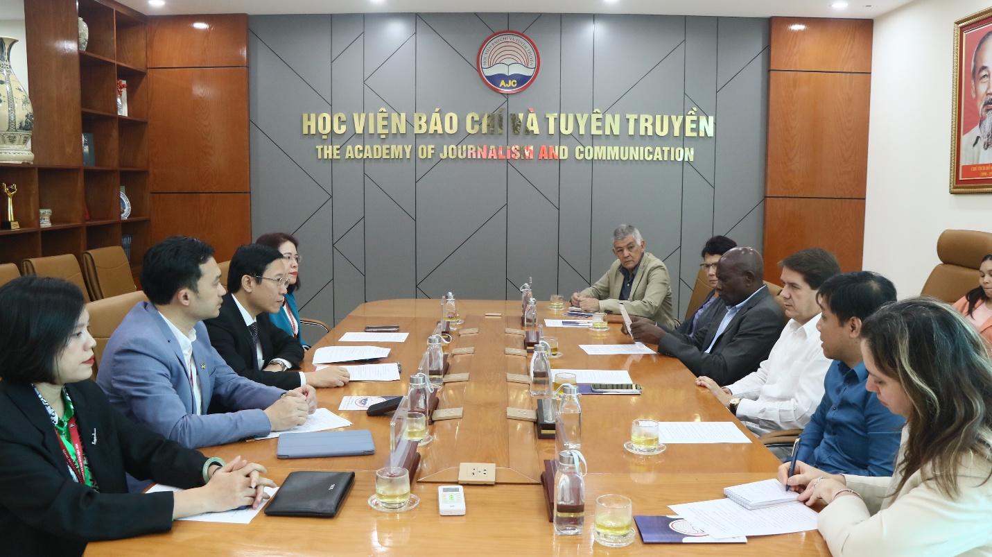 Chủ trì buổi tiếp, về phía Học viện Báo chí và Tuyên truyền có TS. Nguyễn Đức Toàn, Phó Giám đốc Học viện cùng đại diện lãnh đạo các đơn vị: Ban Quản lý khoa học và Hợp tác quốc tế, Khoa Xuất bản, Khoa Quan hệ công chúng và Quảng cáo.