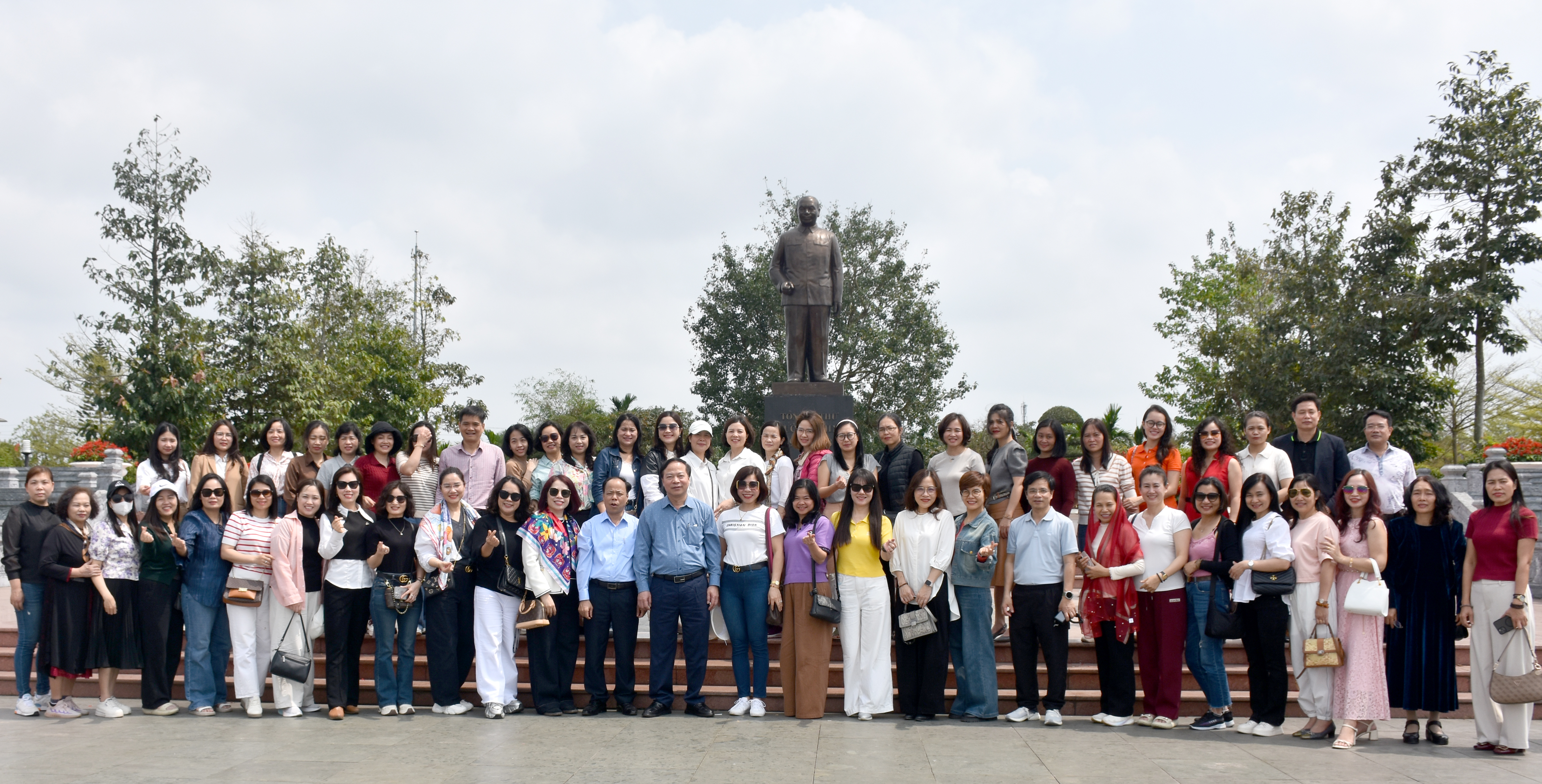 Đoàn chụp ảnh lưu niệm tại tượng đài cố Tổng Bí thư Trường Chinh