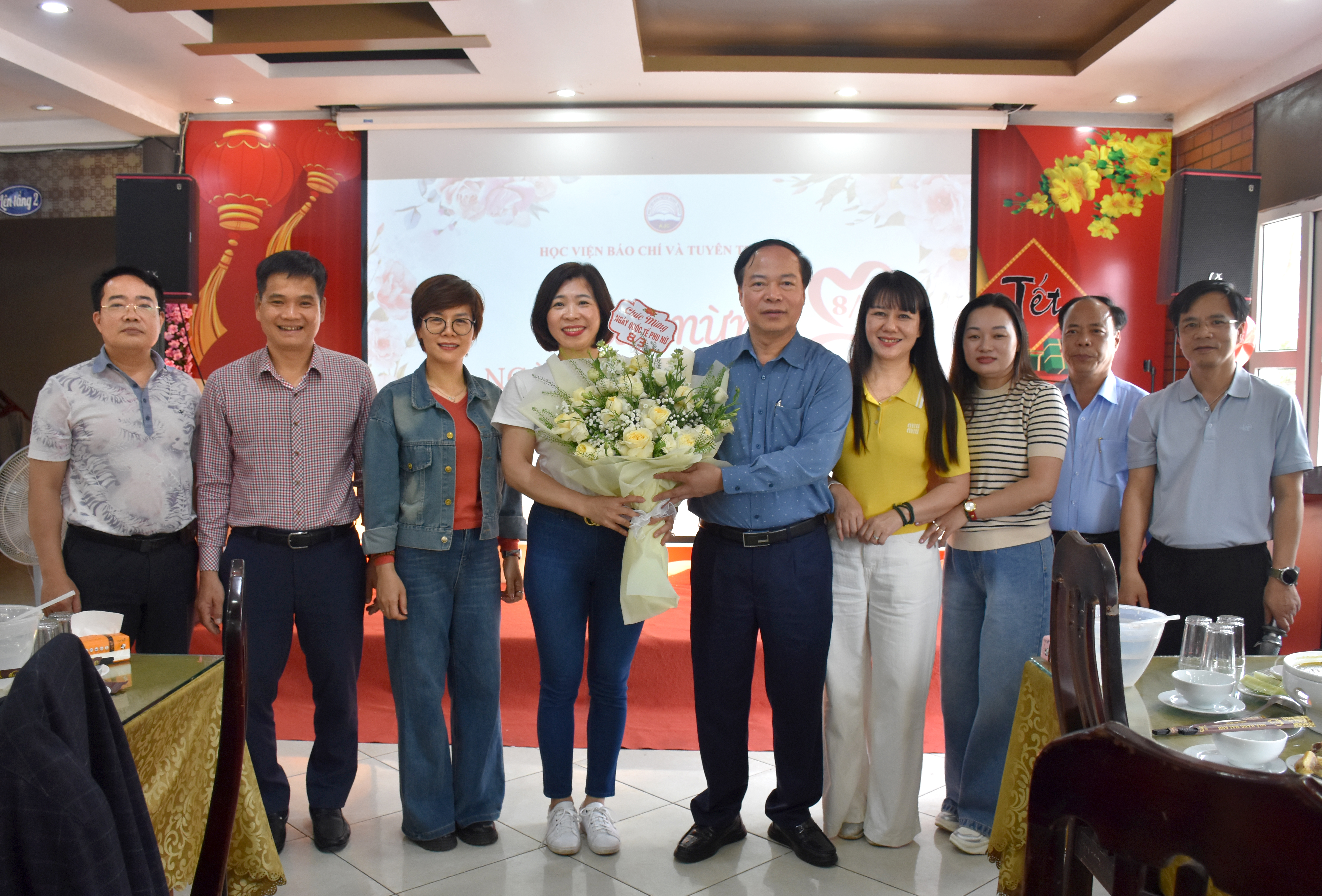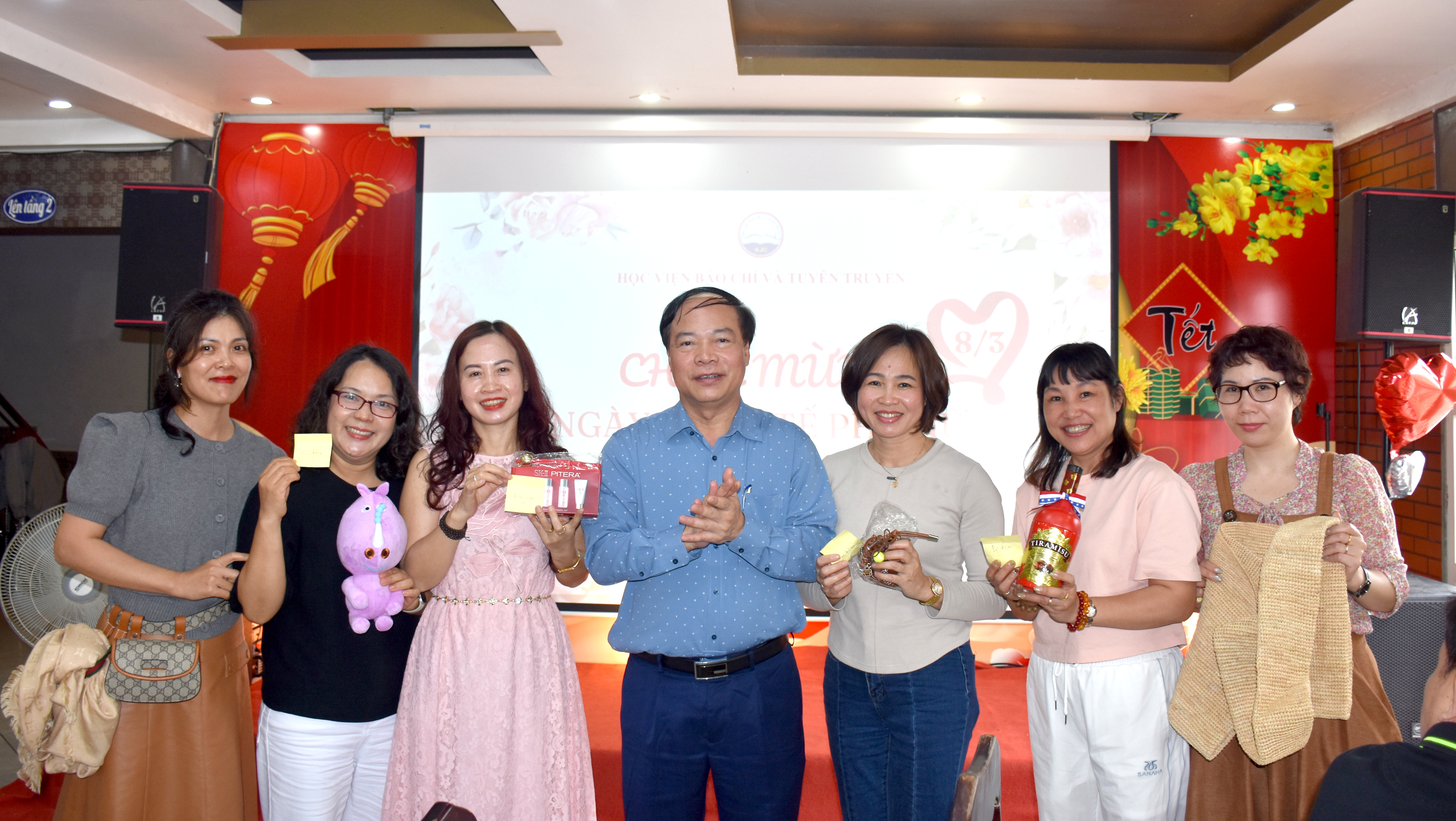 Tại buổi tiệc liên hoan chúc mừng Ngày 8/3, đại diện lãnh đạo Học viện, PGS,TS. Mai Đức Ngọc, Bí thư Đảng ủy Học viện đã gửi lời chúc mừng tốt đẹp tới toàn thể nữ cán bộ, giảng viên và người lao động của Học viện. Đồng chí ghi nhận và đánh giá cao những đóng góp quan trọng của đội ngũ nữ cán bộ trong công tác giảng dạy, nghiên cứu khoa học, quản lý và phục vụ; đồng thời, mong muốn các nữ cán bộ, giảng viên tiếp tục phát huy truyền thống tốt đẹp của phụ nữ Việt Nam, không ngừng nỗ lực, sáng tạo trong công việc, góp phần xây dựng Học viện Báo chí và Tuyên truyền ngày càng phát triển vững mạnh.