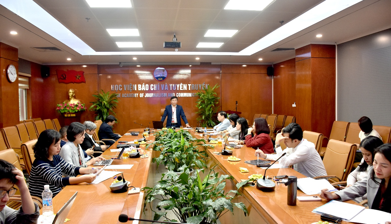 PGS, TS. Phạm Minh Sơn, Giám đốc Học viện Báo chí và Tuyên truyền chủ trì hai Tọa đàm. Tham dự có các chuyên gia, nhà khoa học là đại diện lãnh đạo các đơn vị trong Học viện và thành viên thực hiện Nhiệm vụ.
