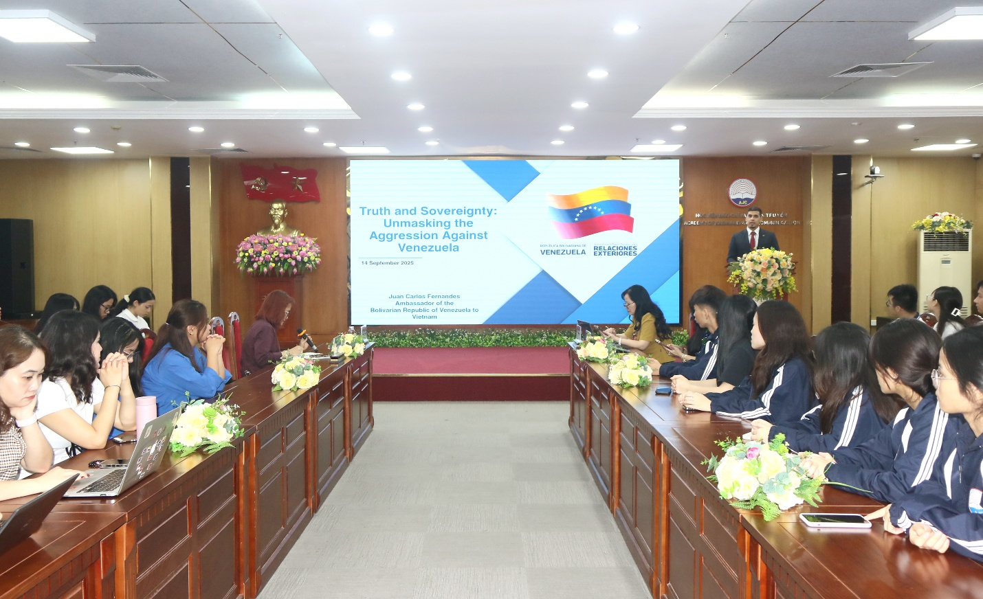 Nhân chuyến thăm và làm việc tại Học viện Báo chí và Tuyên truyền, Ngài Juan Carlos Fernandes Juárez, Đại sứ đặc mệnh toàn quyền nước Cộng hòa Bolivar Venezuela tại Việt Nam đã có buổi giao lưu, chia sẻ với giảng viên, sinh viên Học viện Báo chí và Tuyên truyền về vai trò của truyền thông trong việc chống lại những thông tin sai lệch và bảo vệ hình ảnh quốc gia.