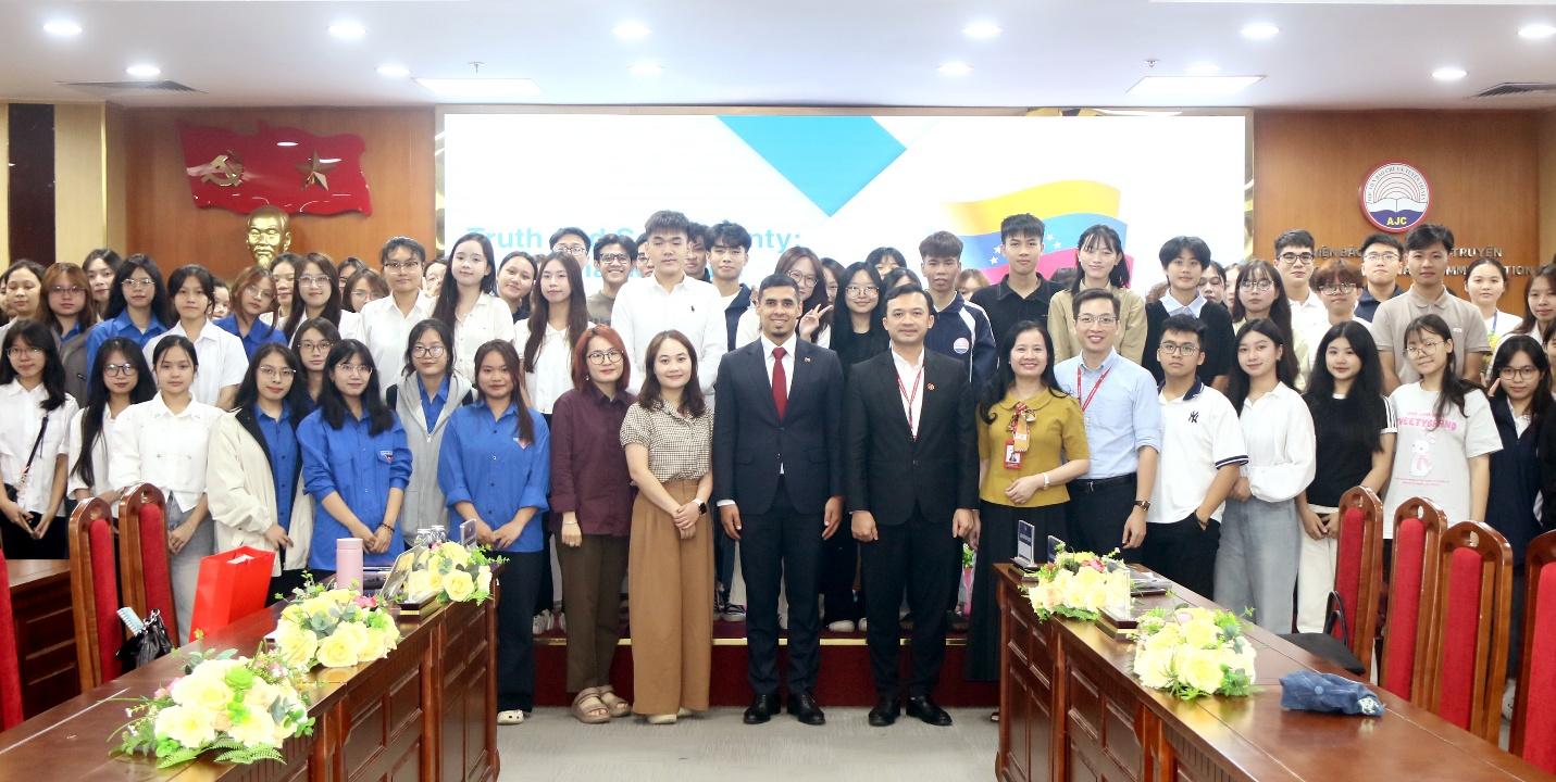 Ngài Juan Carlos Fernandes Juárez, Đại sứ đặc mệnh toàn quyền nước Cộng hòa Bolivar Venezuela tại Việt Nam giao lưu, chia sẻ với giảng viên, sinh viên Học viện Báo chí và Tuyên truyền