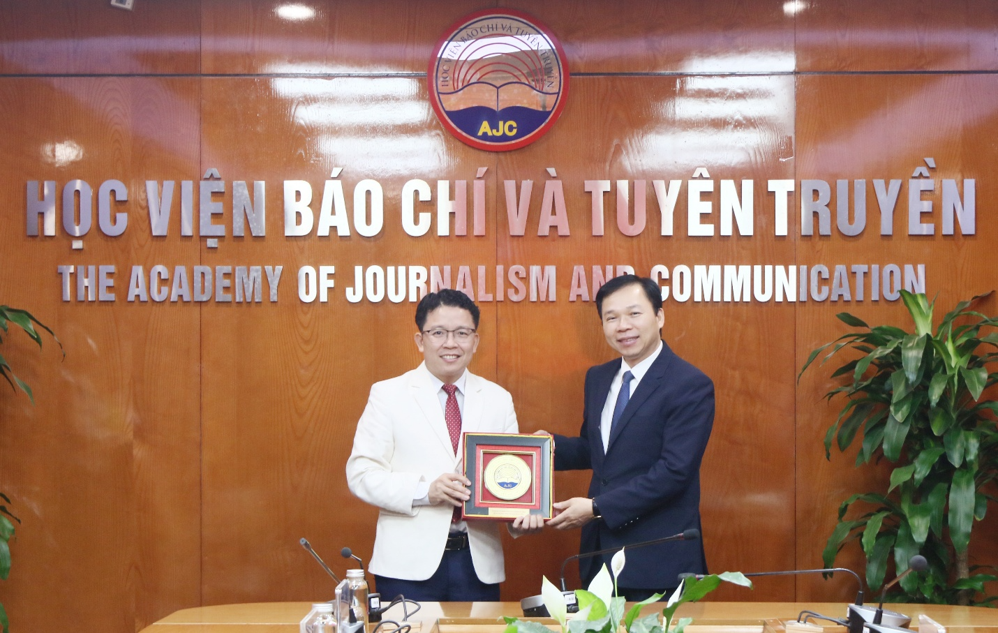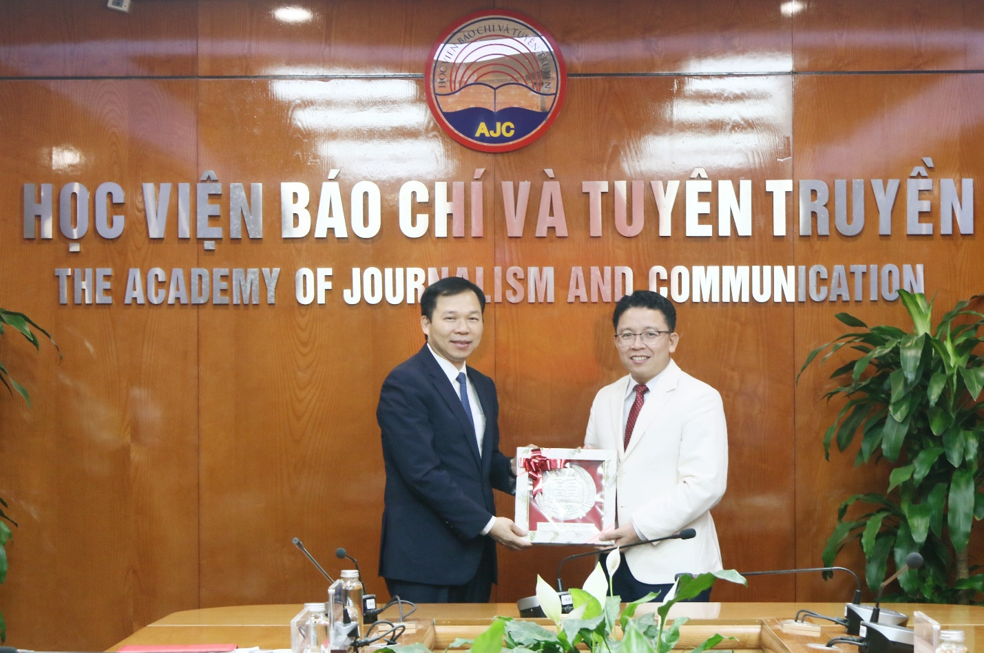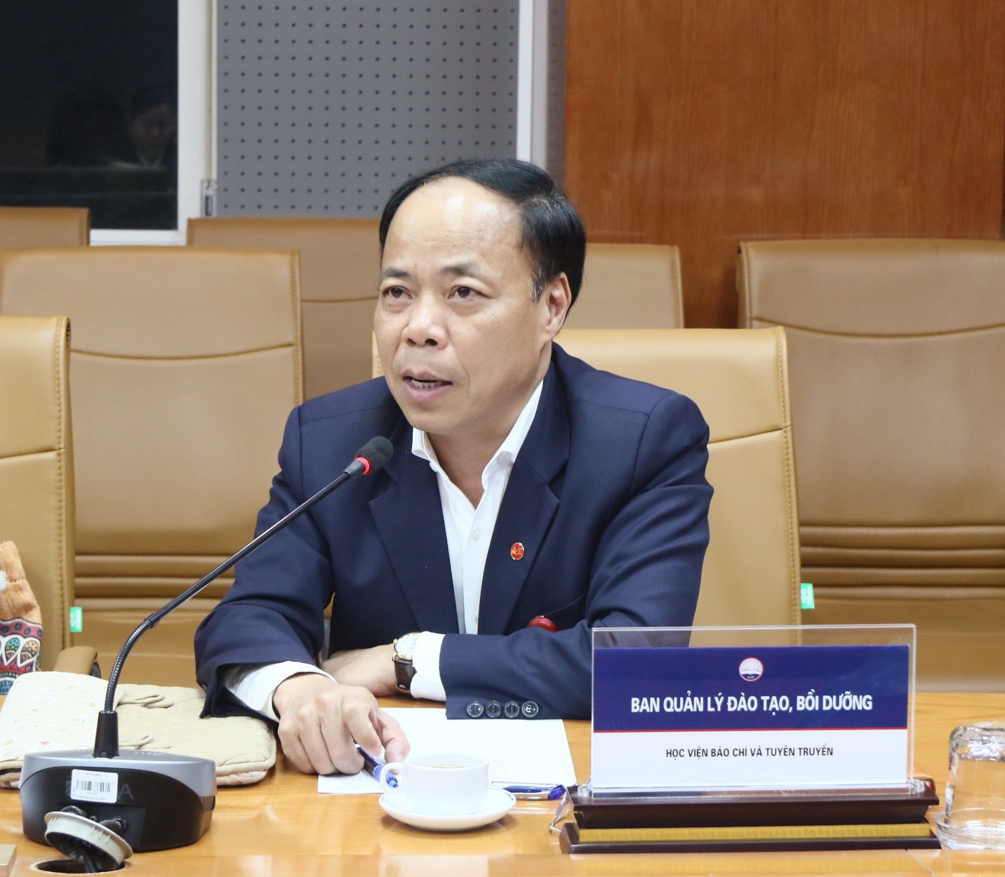 Tiếp đoàn, về phía Học viện Báo chí và Tuyên truyền có PGS,TS. Lưu Văn Quảng, Thường vụ Đảng ủy, Phó Giám đốc Học viện; đại diện lãnh đạo các đơn vị: Ban Quản lý khoa học và Hợp tác quốc tế, Ban Quản lý đào tạo, bồi dưỡng; Khoa Kinh tế chính trị; Khoa Xây dựng Đảng; Khoa Tư tưởng Hồ Chí Minh.