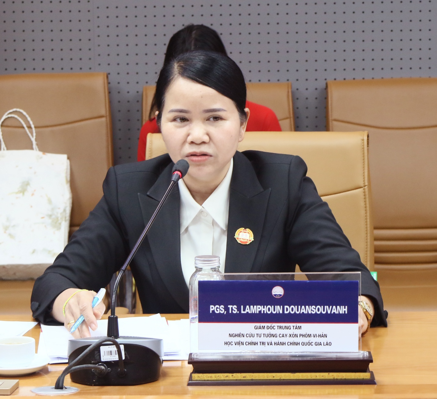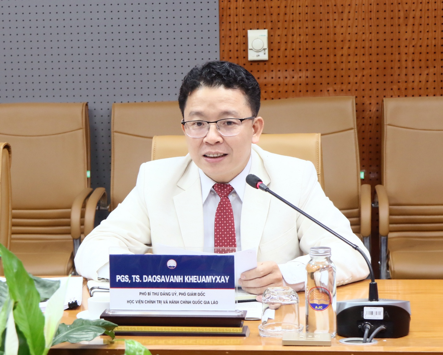 TS. Đao Sạ Vẳn Khưa Mi Xay, Phó Bí thư Đảng ủy, Phó Giám đốc Học viện Chính trị và Hành chính Quốc gia Lào trao đổi về định hướng hợp tác hai bên thời gian tới