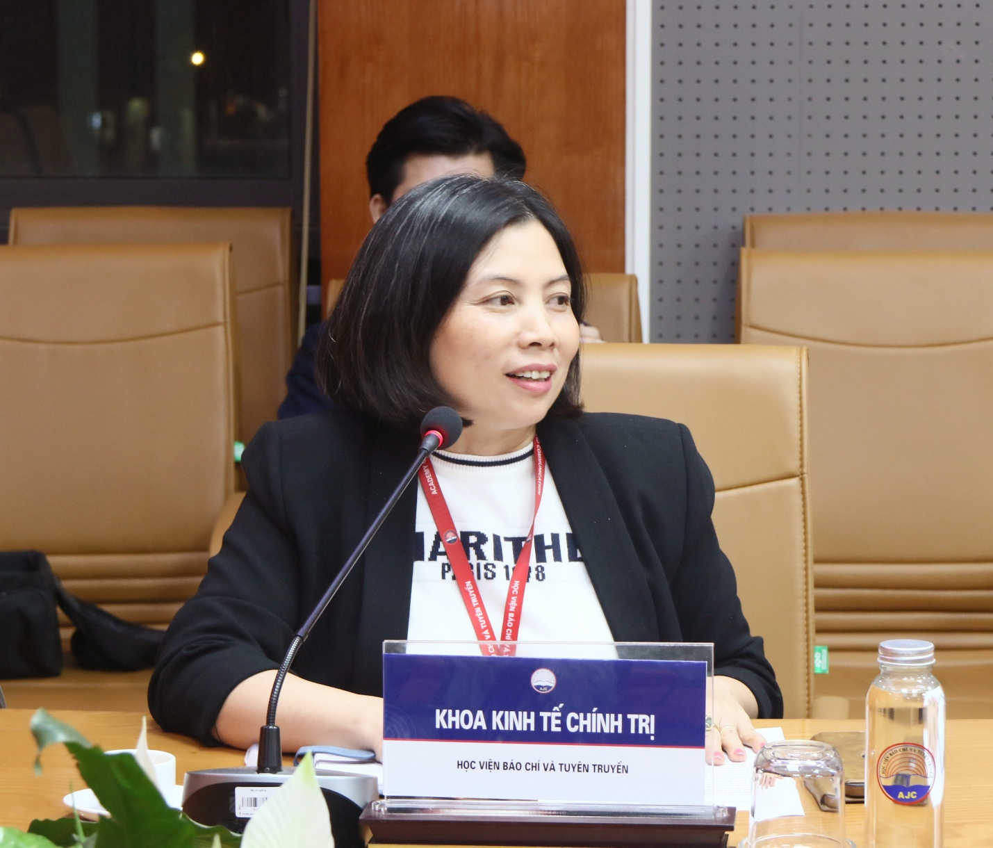 TS. Nguyễn Thị Khuyên, Trưởng Khoa Kinh tế chính trị trao đổi tại buổi làm việc