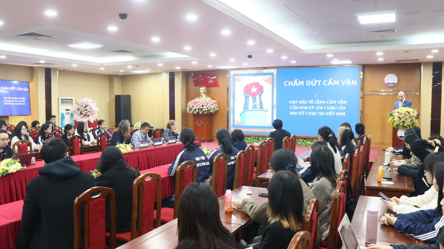 Ngài Rogelio Polanco Fuentes, Đại sứ đặc mệnh toàn quyền Cộng hòa Cuba tại Việt Nam trao đổi với giảng viên, sinh viên Học viện về chủ đề “Tác động to lớn của lệnh bao vây, cấm vận kinh tế, quyền con người và chất lượng cuộc sống của nhân dân Cuba”