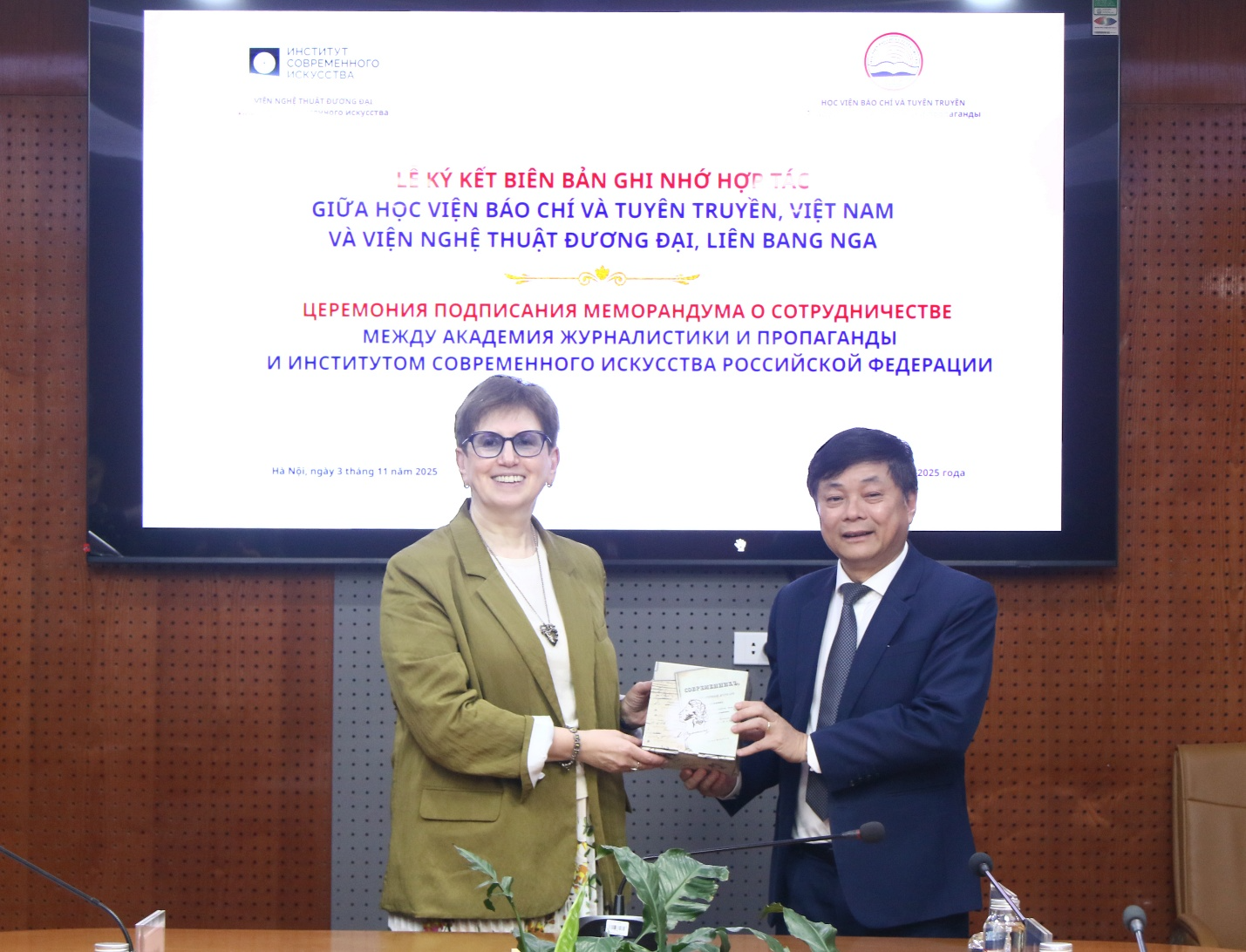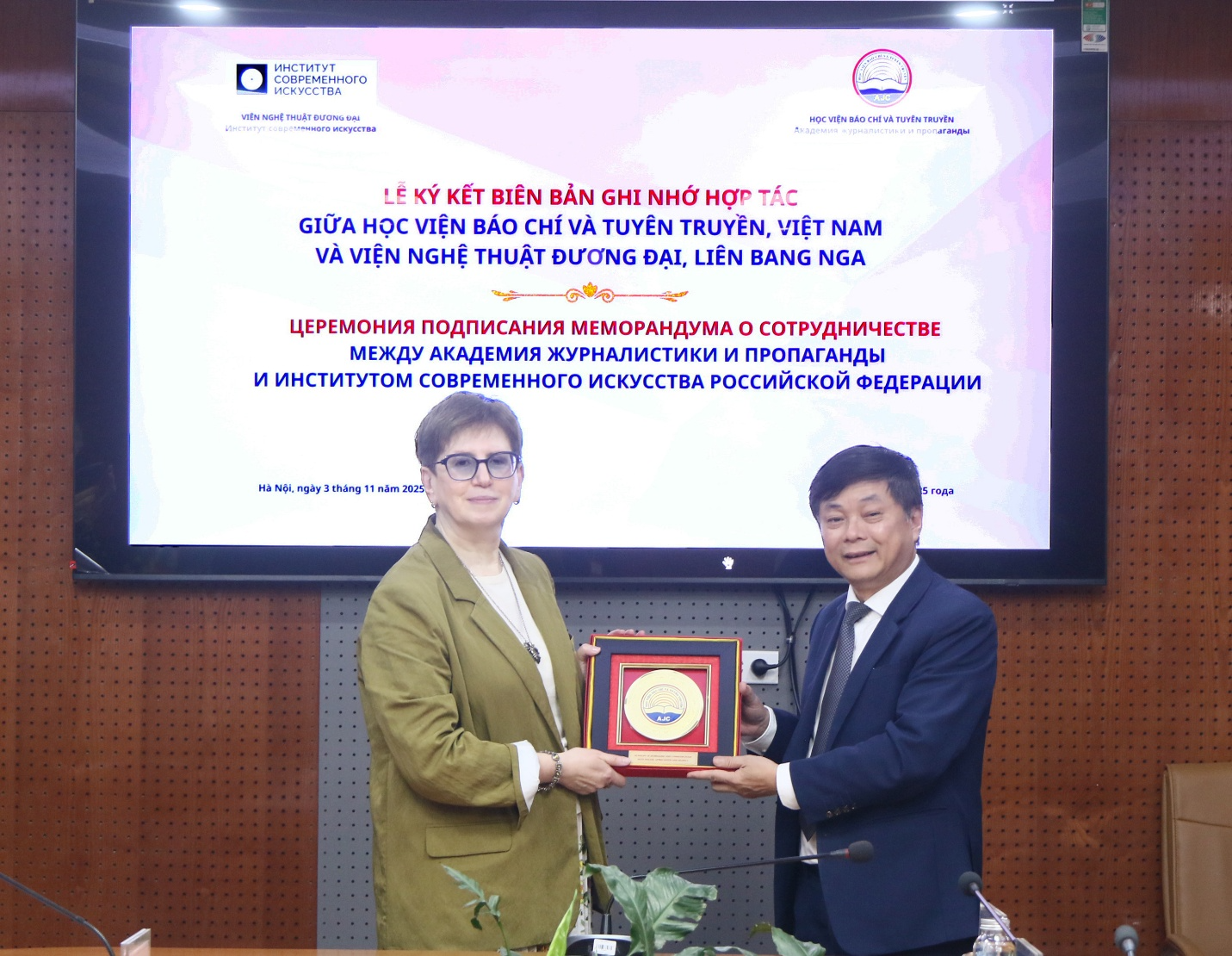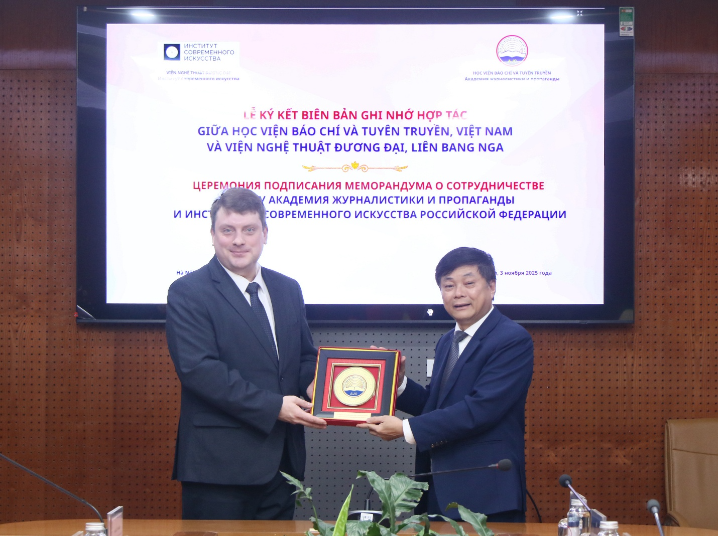 Sáng 03/11/2025, Học viện Báo chí và Tuyên truyền đã có buổi tiếp và làm việc với Đoàn chuyên gia Viện Nghệ thuật đương đại, Liên bang Nga.