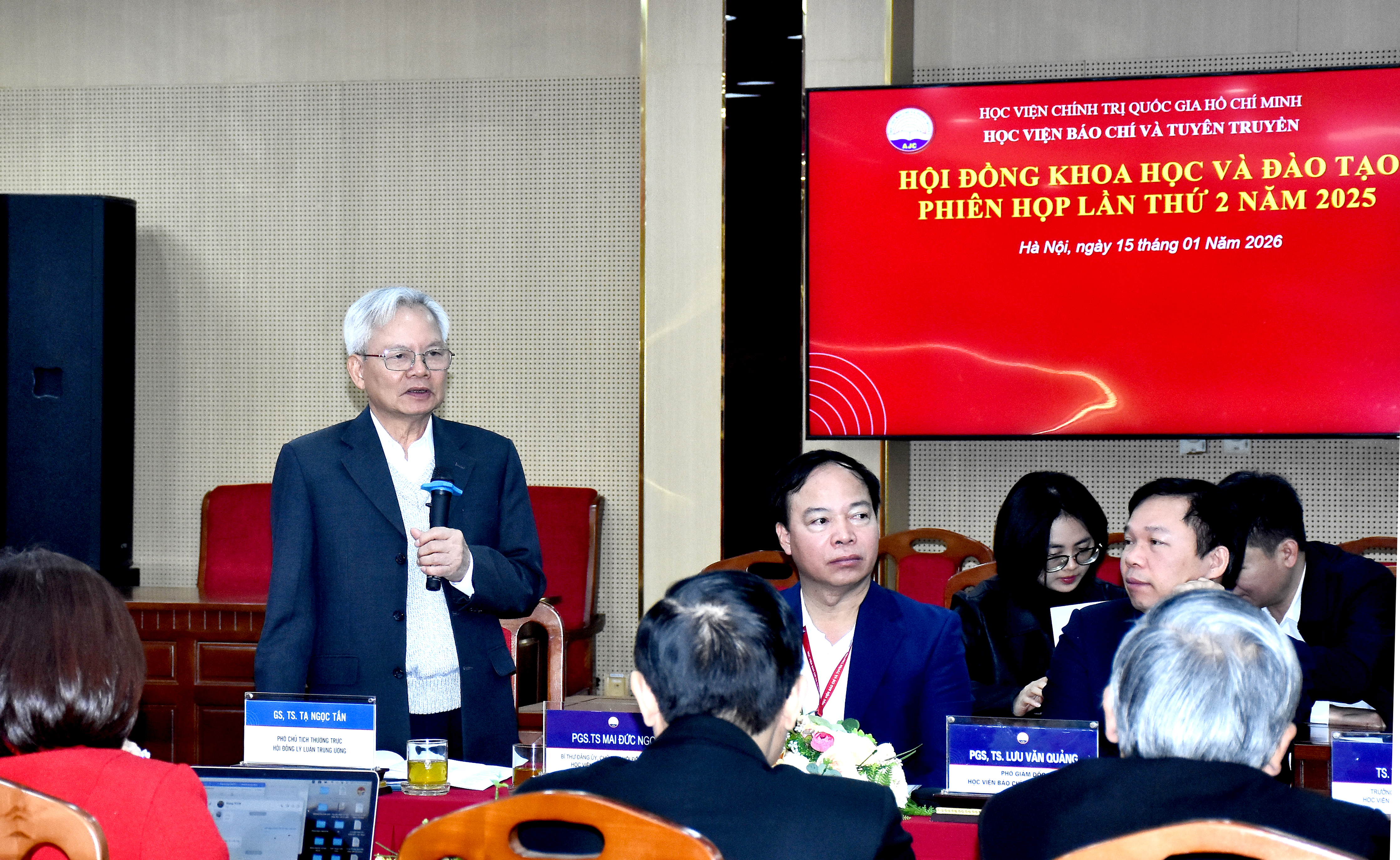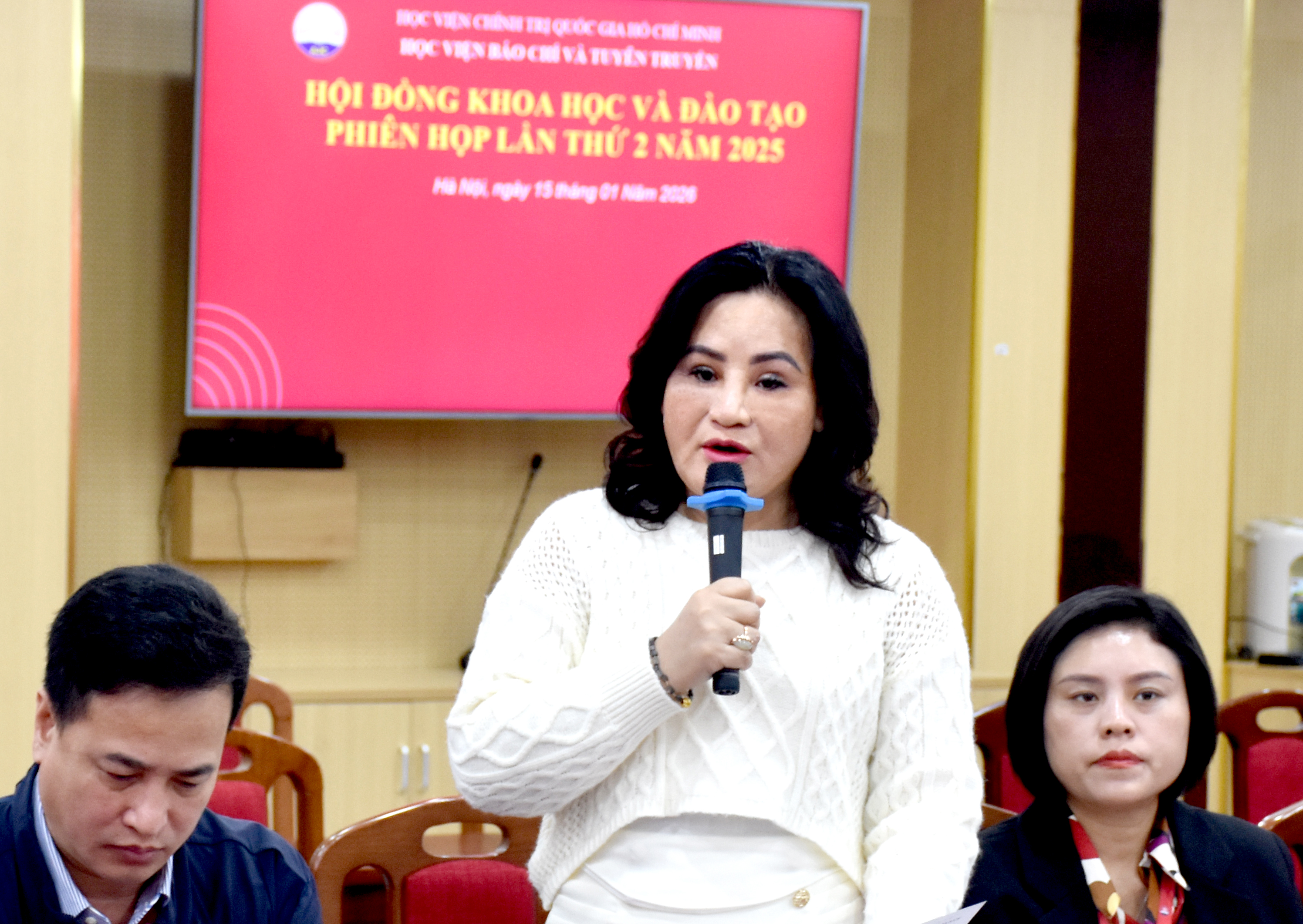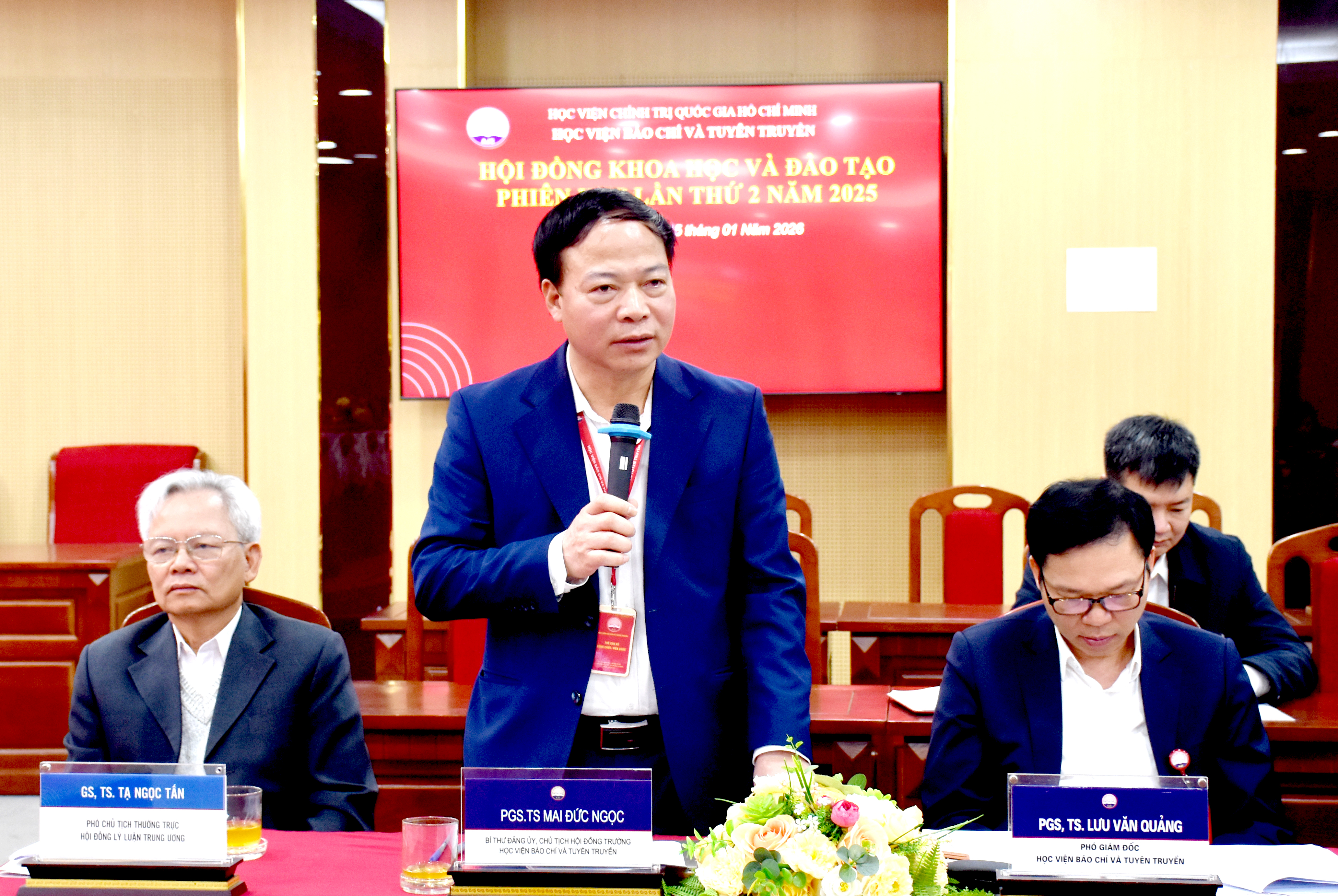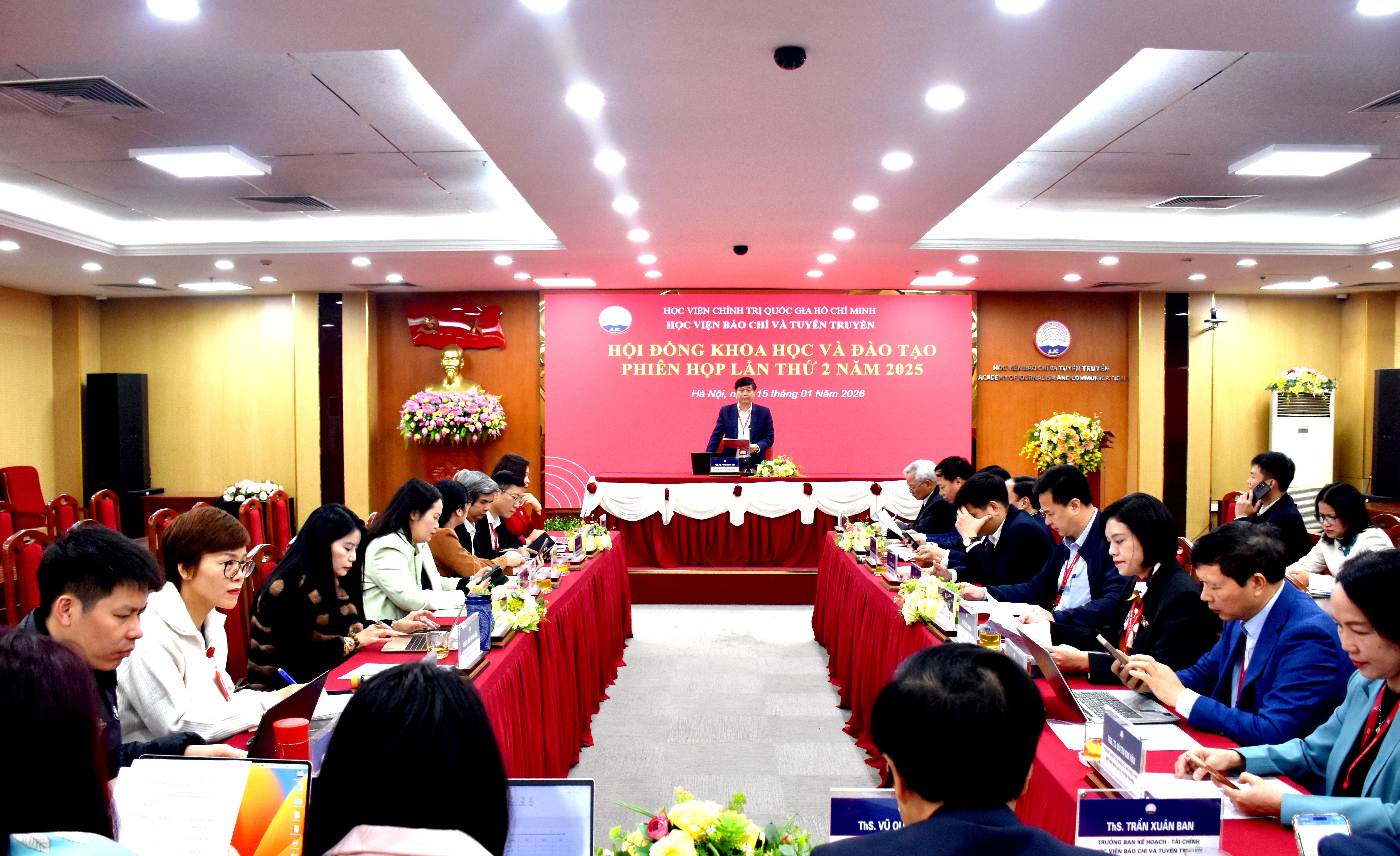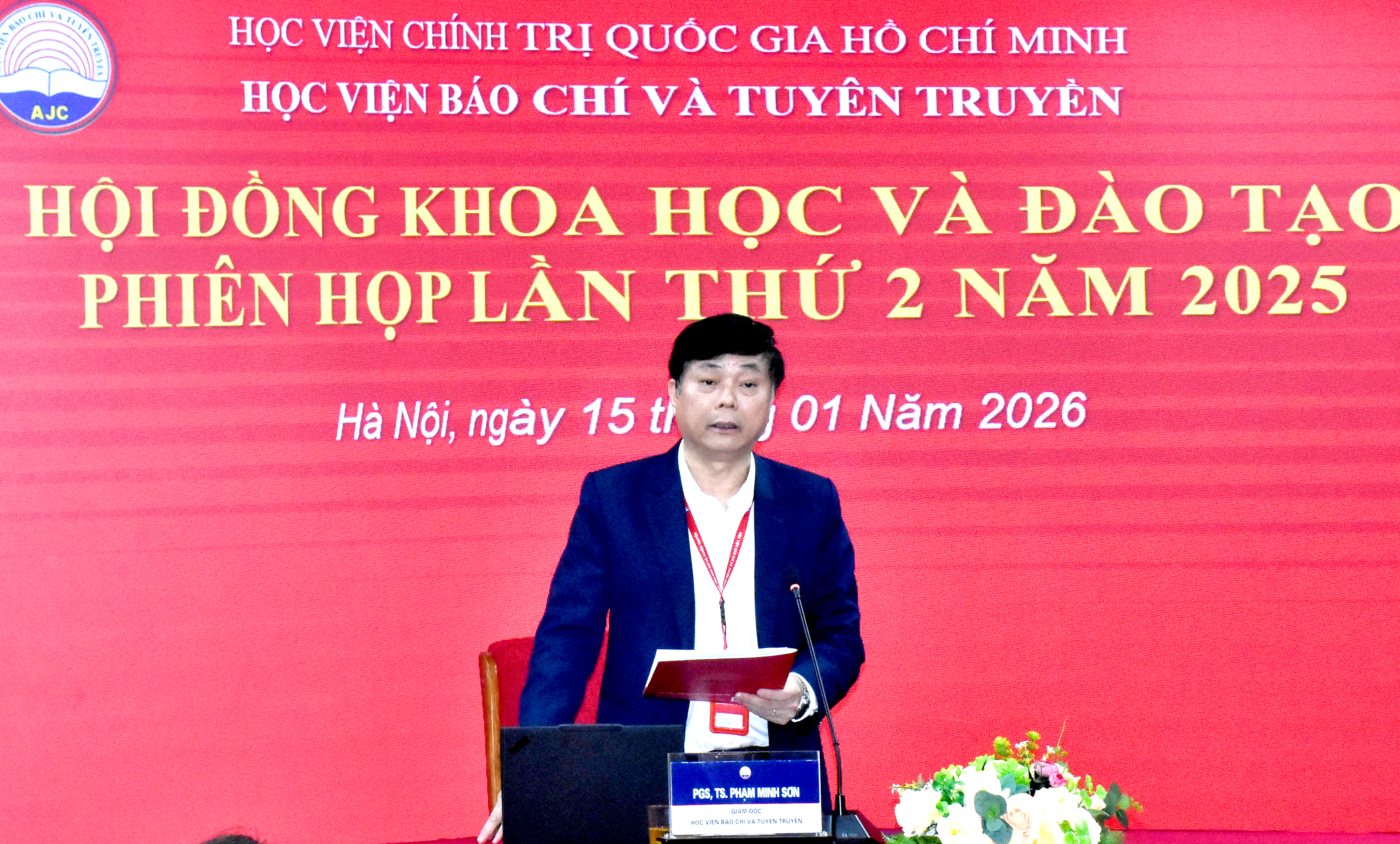 Sáng 15/01/2026, Học viện Báo chí và Tuyên truyền tổ chức phiên họp Hội đồng Khoa học và Đào tạo lần thứ hai năm 2025 nhằm tổng kết, đánh giá kết quả thực hiện nhiệm vụ năm 2025 và thảo luận định hướng, nhiệm vụ trọng tâm năm 2026. PGS,TS. Phạm Minh Sơn, Giám đốc Học viện, Chủ tịch Hội đồng Khoa học và Đào tạo chủ trì phiên họp.