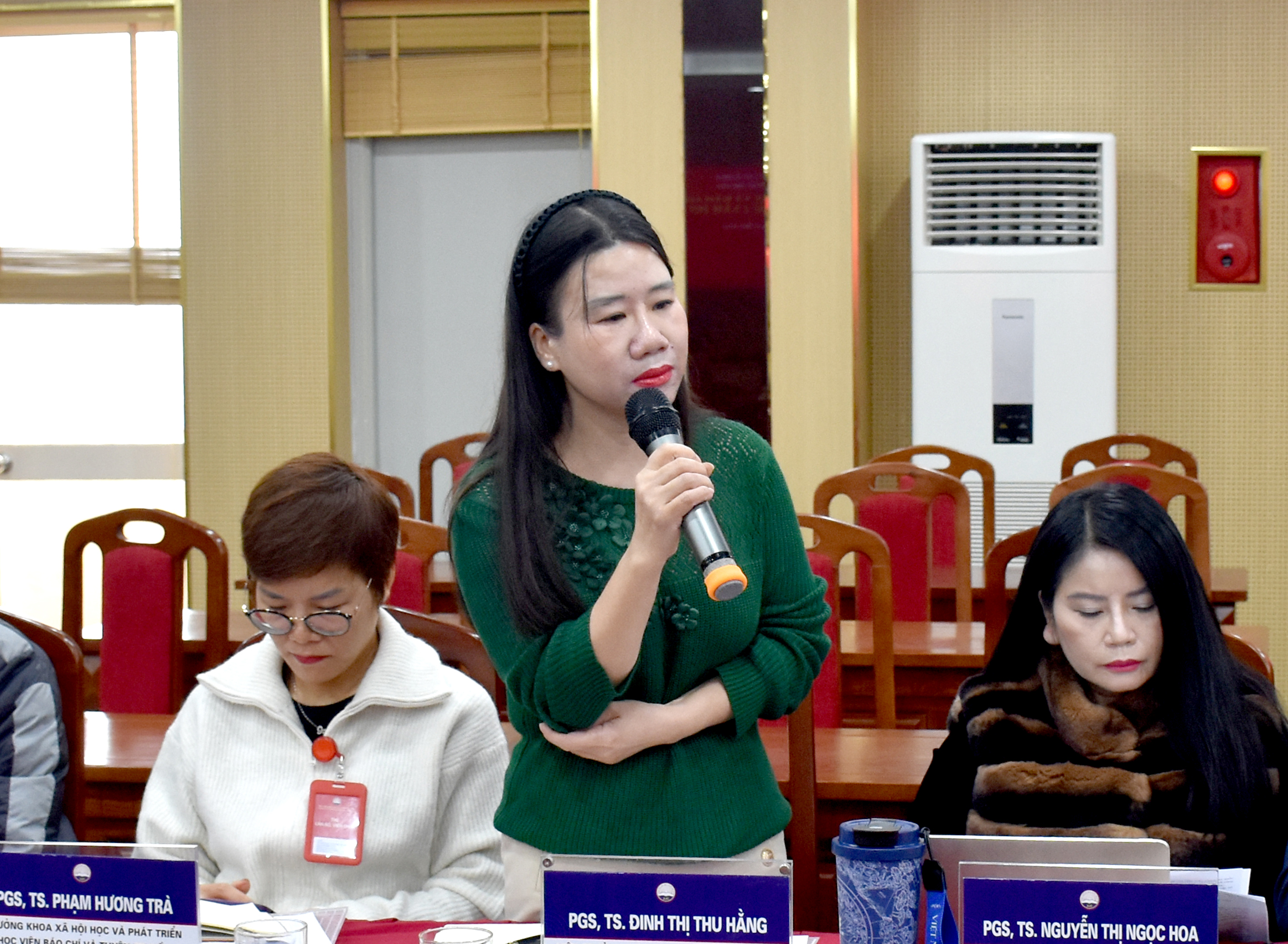 PGS,TS. Phạm Hương Trà, Trưởng khoa Xã hội học và Phát triển trao đổi tại phiên họp
