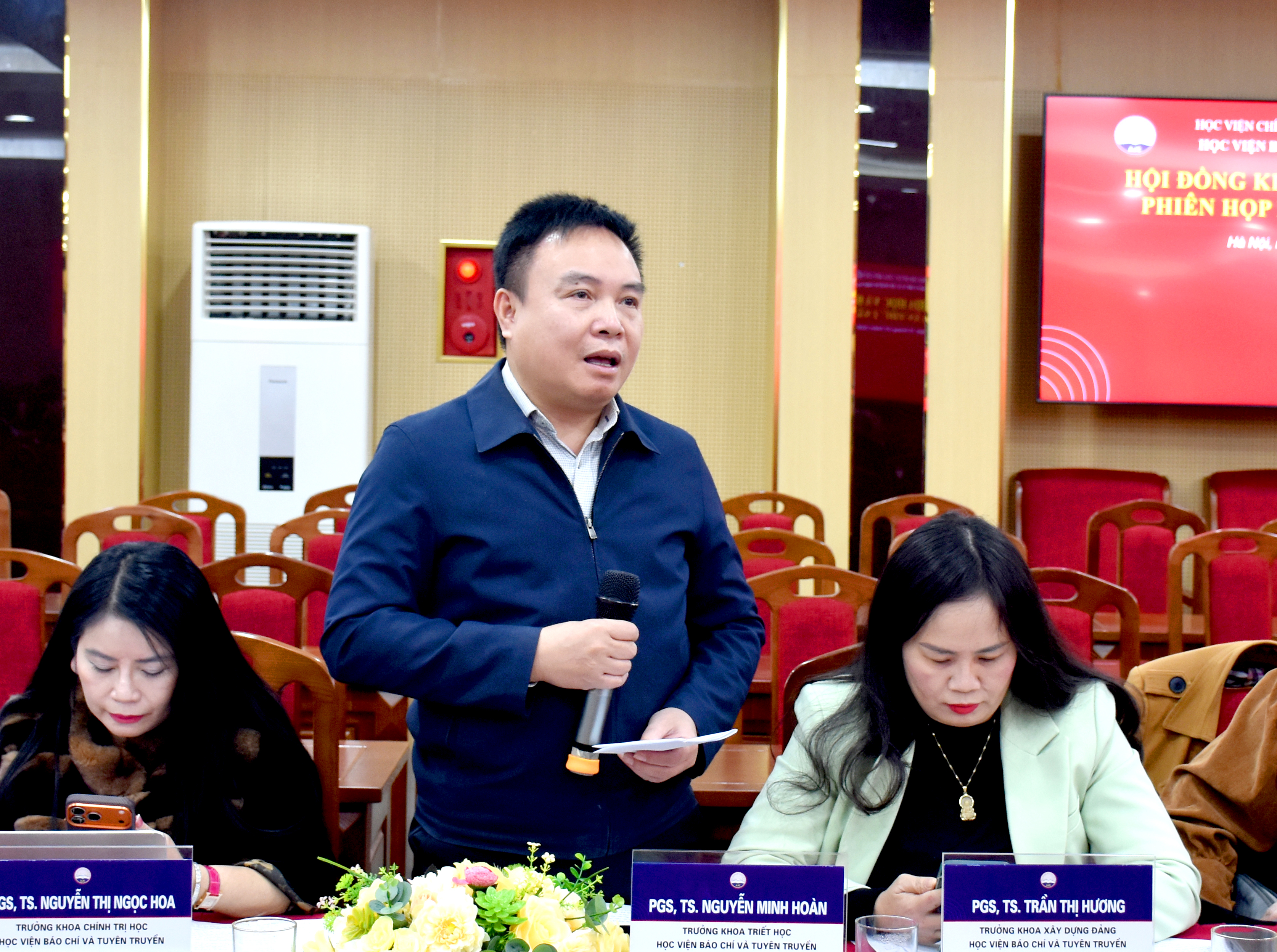Tham dự phiên họp có GS,TS. Tạ Ngọc Tấn, Phó Chủ tịch Thường trực Hội đồng Lý luận Trung ương, nguyên Giám đốc Học viện Chính trị quốc gia Hồ Chí Minh, nguyên Giám đốc Học viện Báo chí và Tuyên truyền; PGS,TS. Mai Đức Ngọc, Bí thư Đảng uỷ Học viện; các đồng chí Phó Giám đốc Học viện cùng các nhà khoa học, chuyên gia, thành viên Hội đồng Khoa học và Đào tạo, lãnh đạo các đơn vị trực thuộc Học viện.