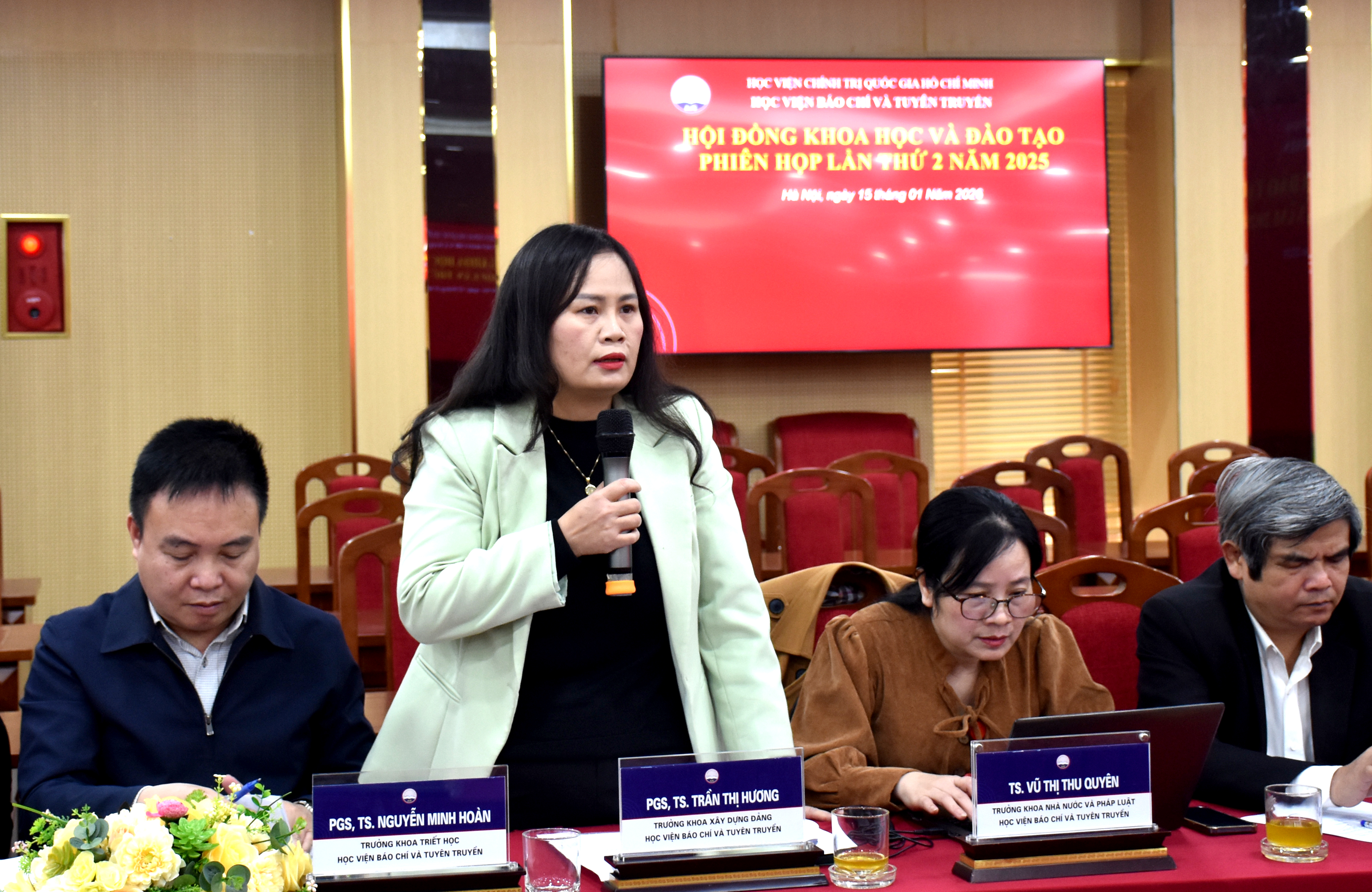 PGS,TS. Trần Thị Hương, Trưởng khoa Xây dựng Đảng trao đổi tại phiên họp