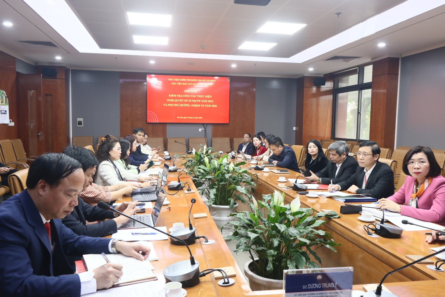 Sáng 05/12/2025, Đảng bộ Học viện Báo chí và Tuyên truyền tổ chức Hội nghị kiểm tra công tác thực hiện Nghị quyết số 35 –NQ/TW năm 2025 và phương hướng, nhiệm vụ năm 2026. Đồng chí PGS,TS. Dương Trung Ý, Ủy viên Ban Thường vụ Đảng ủy, Phó Giám đốc, Phó Trưởng Ban Thường trực Ban Chỉ đạo 35 Học viện Chính trị quốc gia Hồ Chí Minh dự và trực tiếp chỉ đạo công tác kiểm tra.