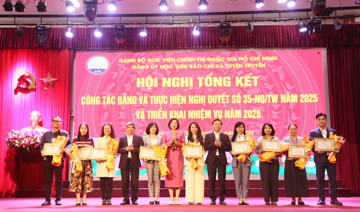 Nhân dịp này, Đảng bộ Học viện đã tuyên dương và trao thưởng cho các chi bộ và đảng viên đạt thành tích xuất sắc trong công tác Đảng năm 2025.