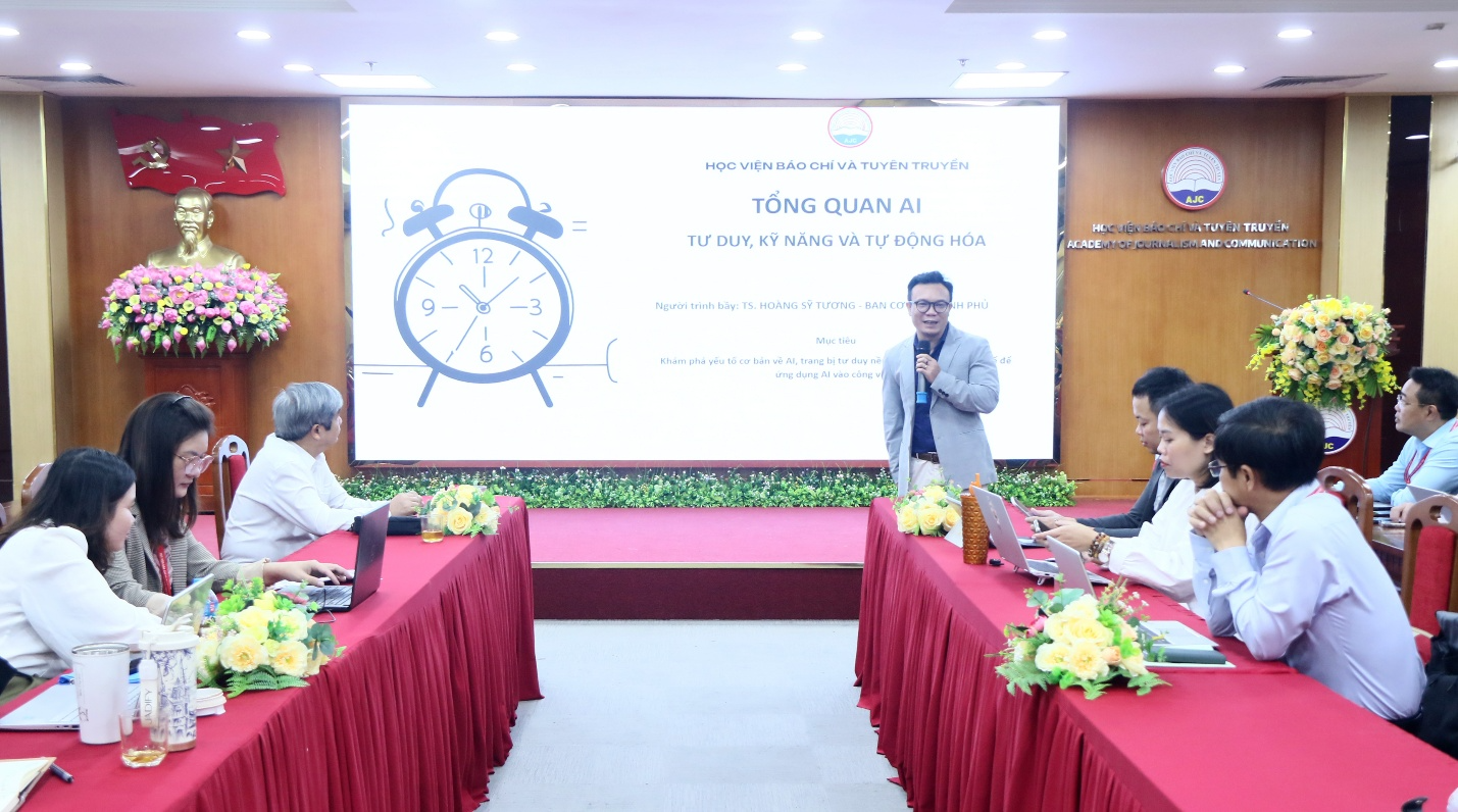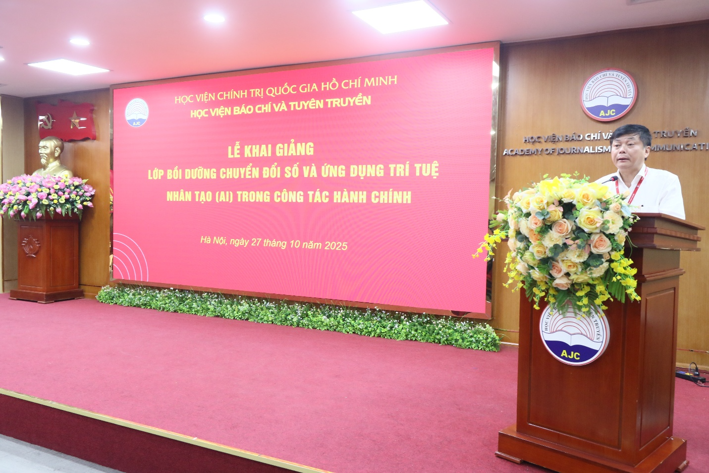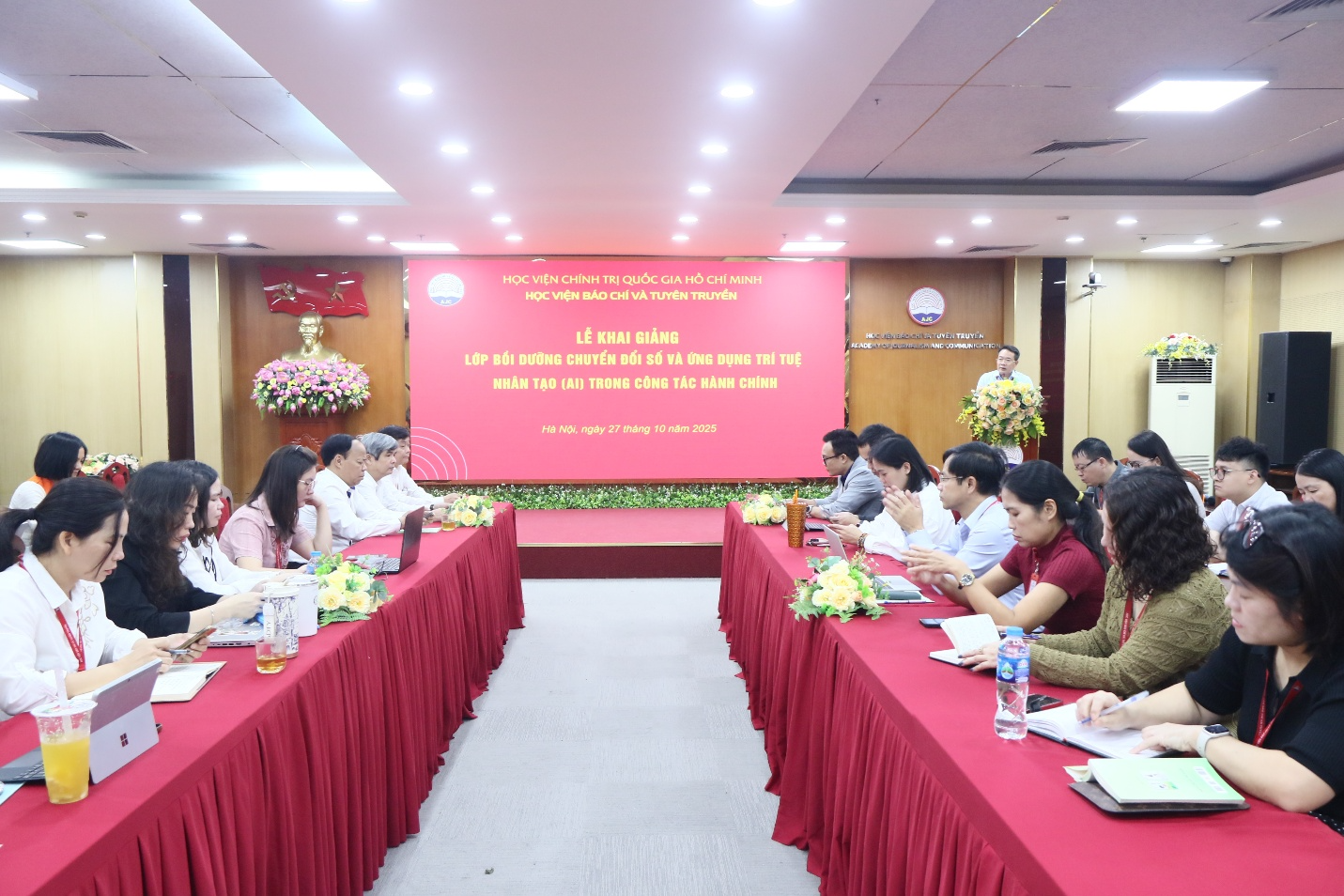 Ngày 27/10/2025, Học viện Báo chí và Tuyên truyền tổ chức Lễ Khai giảng Lớp bồi dưỡng chuyển đổi số và ứng dụng trí tuệ nhân tạo (AI) trong công tác hành chính cho chuyên viên của các Khoa, Phòng, Ban trong Học viện. Lớp học diễn ra từ ngày 27/10/2025 đến 02/11/2025.