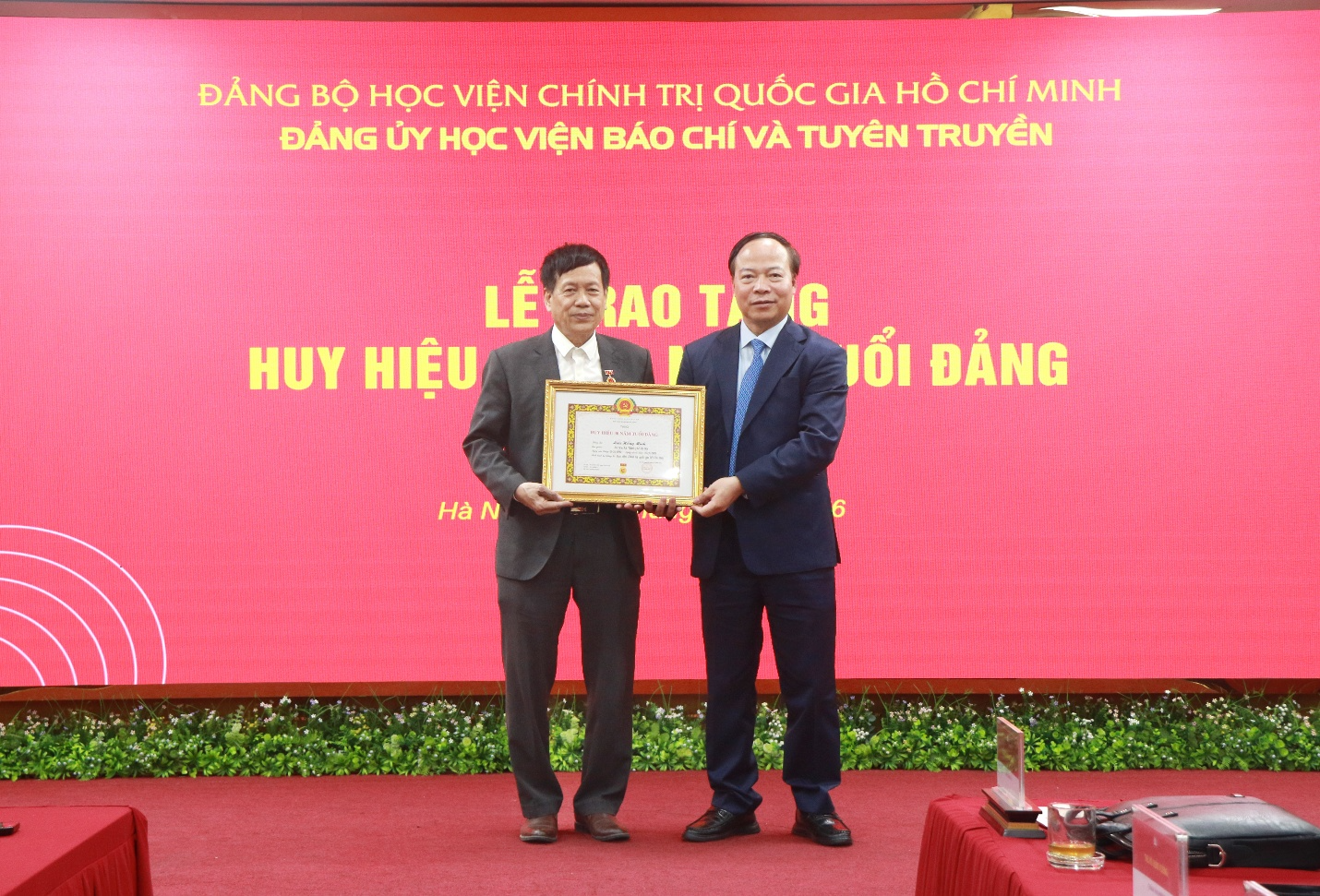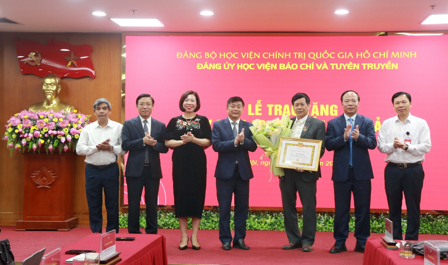 Tại buổi lễ, thừa ủy quyền của Đảng ủy Khối Các cơ quan Trung ương, Đảng ủy Học viện Chính trị quốc gia Hồ Chí Minh, Đảng ủy Học viện Báo chí và Tuyên truyềnđồng chí Hà Huy Phượng, Trưởng ban Tổ chức cán bộ, Trưởng Ban Tổ chức Đảng ủy đã công bố Quyết định của Đảng ủy Khối Các cơ quan Trung ương về việc trao tặng Huy hiệu 40 năm tuổi Đảng cho đảng viên Lê Khánh Lộc, trao tặng Huy hiệu 30 năm tuổi Đảng cho đảng viên Lưu Hồng Minh và đảng viên Ngô Đức Phương.