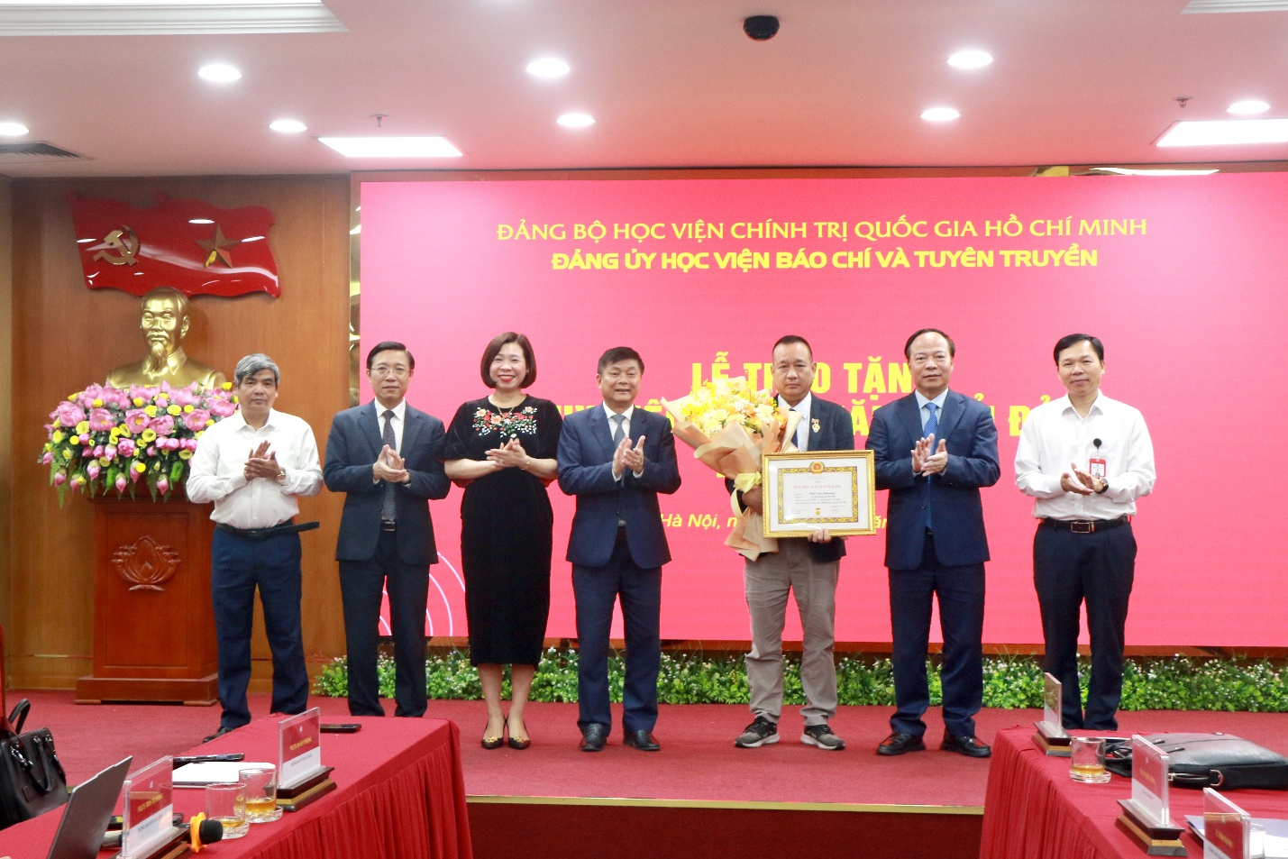 Ban lãnh đạo Học viện tặng hoa chúc mừng đảng viên Ngô Đức Phương