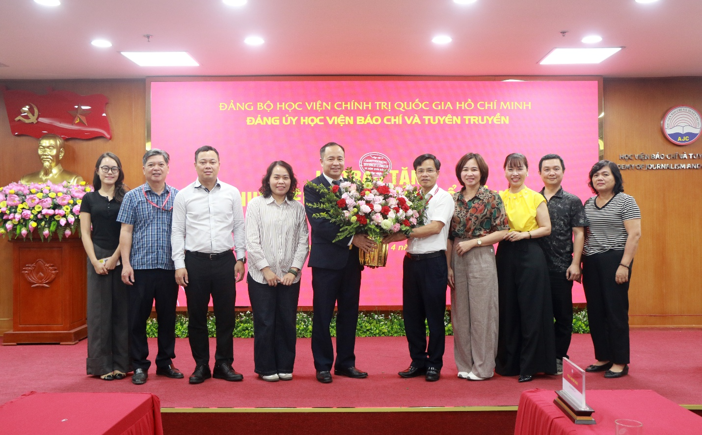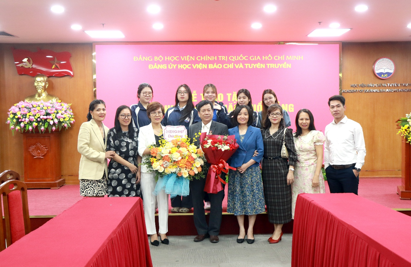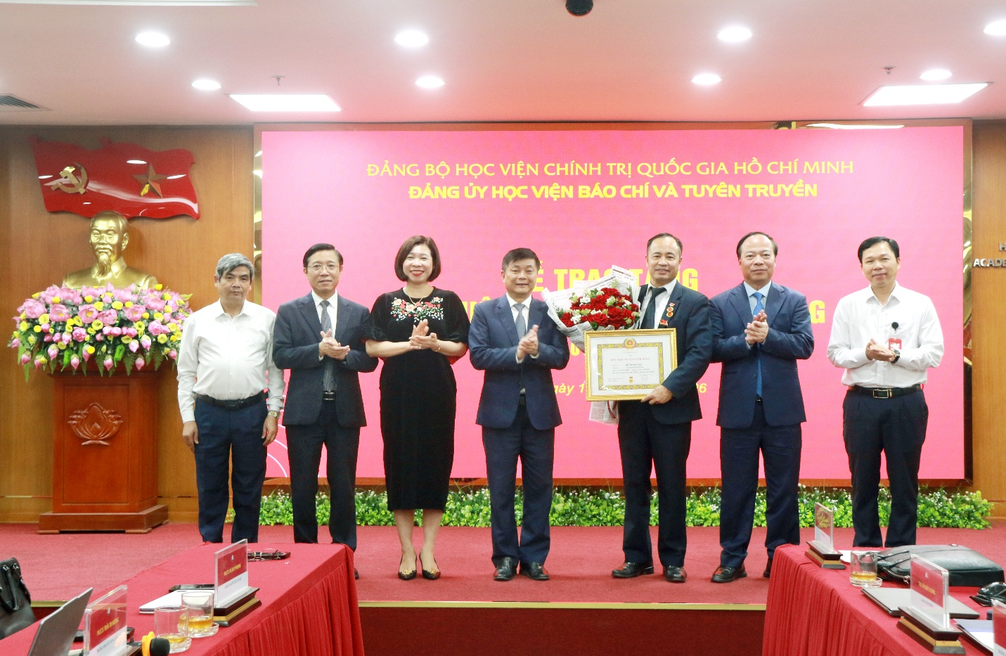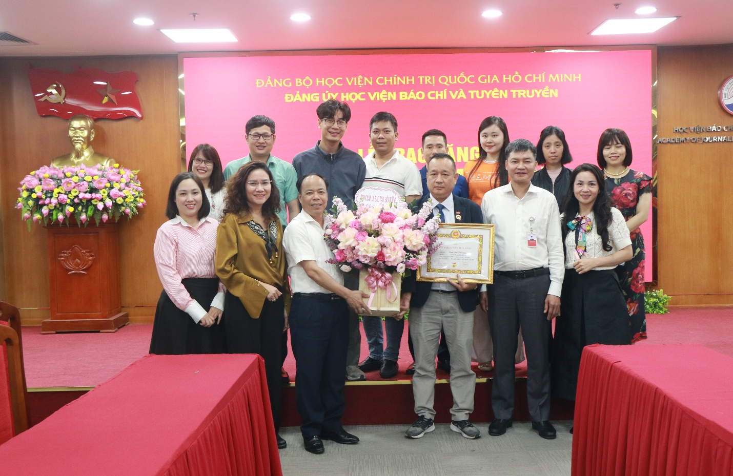 Ban lãnh đạo Học viện tặng hoa chúc mừng đảng viên Lưu Hồng Minh