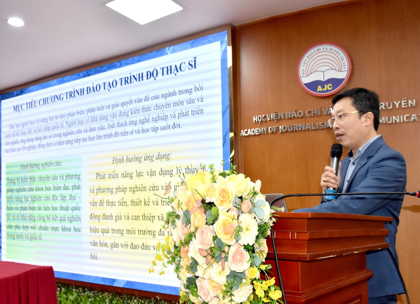 Phát biểu chào mừng Tọa đàm, PGS, TS. Nguyễn Thị Trường Giang, Phó Giám đốc Học viện Báo chí và Tuyên truyền bày tỏ vinh dự khi Học viện được Bộ Giáo dục và Đào tạo tin tưởng giao nhiệm vụ phối hợp tổ chức sự kiện. Lãnh đạo Học viện khẳng định, việc hoàn thiện Chuẩn CTĐT ở trình độ thạc sĩ, tiến sĩ có ý nghĩa thiết thực đối với sự phát triển lĩnh vực Khoa học xã hội và hành vi, góp phần nâng cao chất lượng nguồn nhân lực trình độ cao của đất nước. Học viện cam kết tiếp tục phối hợp chặt chẽ với Bộ Giáo dục và Đào tạo và các cơ sở đào tạo trên toàn quốc trong triển khai Chuẩn CTĐT sau khi được ban hành; đồng thời, đẩy mạnh đổi mới đào tạo, tăng cường nghiên cứu khoa học và mở rộng hợp tác, hội nhập quốc tế.