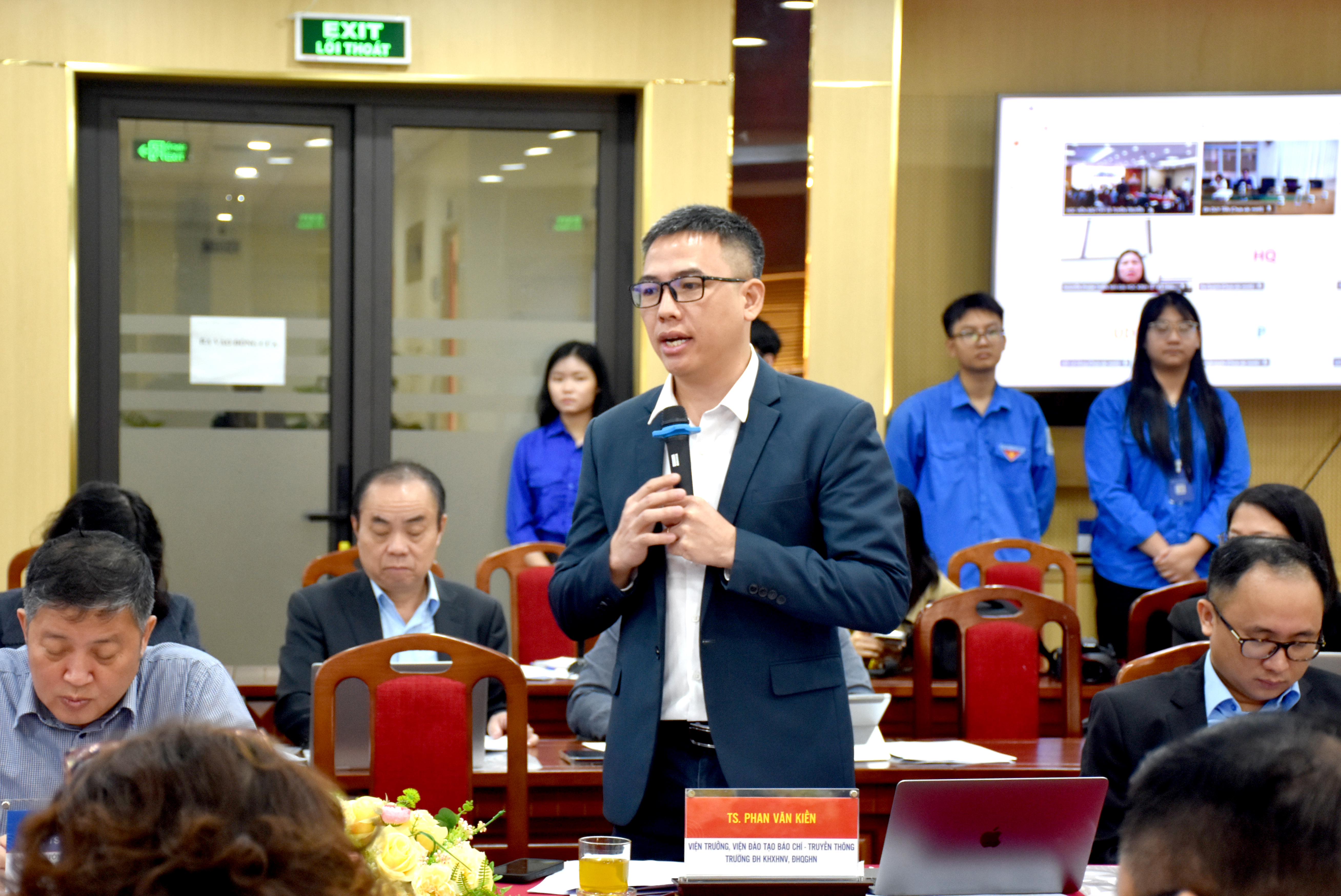 TS. Phan Văn Kiền, Viện trưởng Viện Đào tạo Báo chí và Truyền thông - Trường Đại học Khoa học Xã hội và Nhân văn, Đại học Quốc gia Hà Nội thảo luận, góp ý tại Toạ đàm